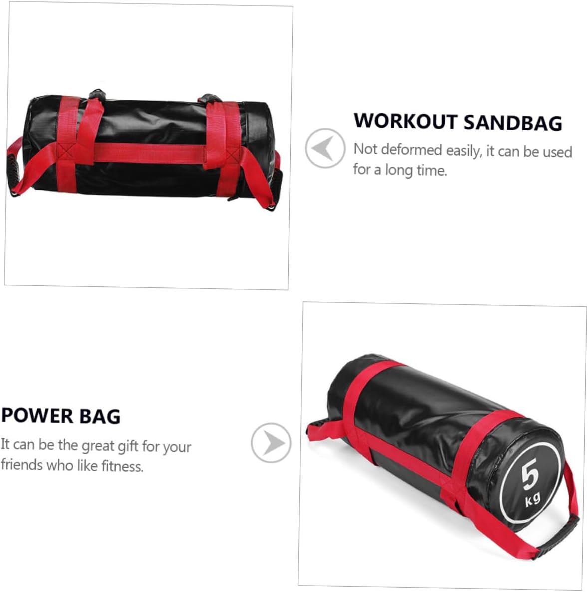 Package List 1 x set of bag Features - Material: PVC, cloth Adjustable Fitness Sandbag. - Not deformed easily, it can be used for a long time Fitness Weights Sandbags. - Assist you in doing various exercises that will help increase strength and endurance sandbags. - Made from great material, it is strong and durable Dynamic Load Exercises. - It can be the for your friends who like fitness weightlifting sandbag. - Equipped with handles to perform correct movement and ensure you have a firm but comfortable grip power bag.Goods Descriptionsandbags Equipped with handles ensuring the correct movement as well as comfortable grip.gym training sandbag This professional power bag, made of material, is practical and durable for long lasting use.Exercise Training Bag Offers just the perfect level of resistance which keeps it consistent and even across the whole surface area of the bag