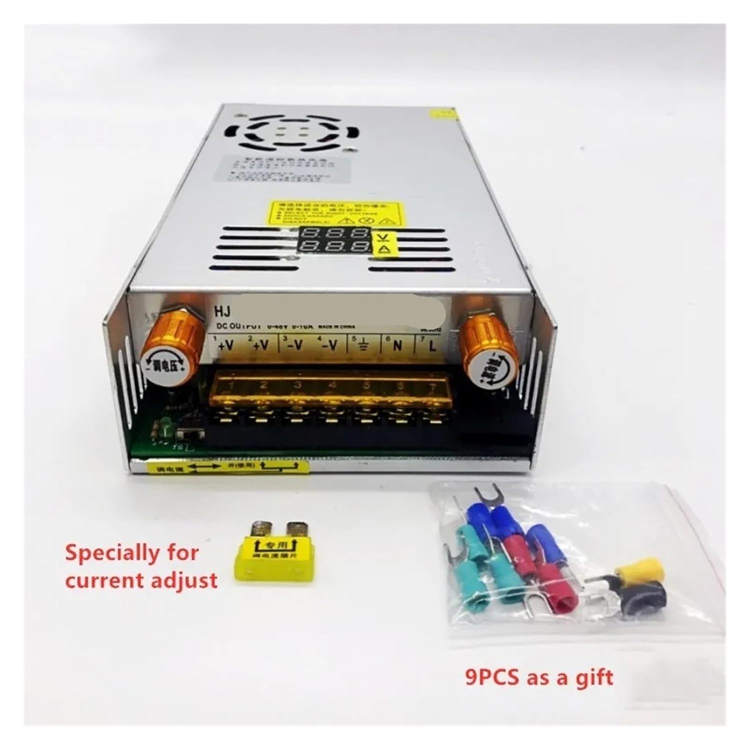 Power SuppliesAC DC 5V 12V 24V 36V 48V adjustable switching power supply 60V 80V 120V 160V 220V 480W with digital display power supply 12V1. Technical performance indicators1. Output voltage range: 0--5V continuously adjustable output current: 60AOutput voltage range: 0-12V continuously adjustable output current: 40AOutput voltage range: 0-24V continuously adjustable output current: 20AOutput voltage range: 0-36V continuously adjustable output current: 15AOutput voltage range: 0-48V continuously adjustable output current: 10AOutput voltage range: 0-60V continuously adjustable output current: 8AOutput voltage range: 0-80V continuously adjustable output current: 6AOutput voltage range: 0-120V continuously adjustable output current: 4AOutput voltage range: 0-220V continuously adjustable output current: 2.2A2. Ripple voltage; not more than 100mV3. Equivalent internal resistance of the regulator: not greater than 0.O54. Voltage regulation rate:5. With short circuit, overload protection and automatic recovery functionsInput voltage: AC110V/220V±15%Rated power: 480WProduct size: 21.5CM (length) * 11.5CM (width) * 5CM (height),The output current depends on the load and cannot exceed the maximum output currentInstructions for use:Usage: Mainly used in various DC equipment, DC motor stepless speed regulation, LED stepless dimming, chemical plating speed regulation, scientific research experiments, student experiments, etc. It has a wide range of uses.Special note: If you use inductive loads such as motors and fans, please pay attention to the motor starting current parameters. This parameter must not be higher than the supply current. Otherwise the power supply may be damaged. A power supply with a larger current should be selected or soft-start protection should be provided for the motor. This circuit absorbs surge current.Power formula) Voltage X current = powe
