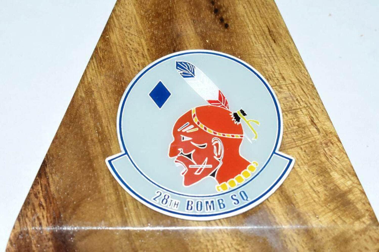 28th Bomb Squadron B-1b ModelFly again with the 28th Bomb Squadron (28 BS) in this hand crafted B-1b model. Each model is carefully carved from wood and hand painted to provide a unique piece you’ll love. 18 inches.The 28th Bomb Squadron (28 BS) is a squadron of the United States Air Force. It is assigned to the 7th Operations Group, Global Strike Command, stationed at Dyess Air Force Base, Texas. The squadron is equipped with the Rockwell B-1B Lancer. The 28 BS is one of the oldest and most decorated units in the United States Air Force, being organized as the 28th Aero Squadron on 22 June 1917 at Kelly Field, Texas. The squadron deployed to France and fought on the Western Front during World War I as a pursuit squadron. The unit was demobilized after the war in 1919. Re-organized in 1921 becoming part of the permanent United States Army Air Service, the squadron served in the Philippines during the Inter-War period, engaging in combat during the 1941-42 Battle of the Philippines at the beginning of World War II. Withdrawn to Australia, it fought in the Dutch East Indies campaign before returning to the United States and being re-equipped with B-29 Superfortress bombers. It returned to the Pacific Theater of Operations (PTO) in early 1945 to carry out strategic bombing missions over the Japanese Home Islands. During the Cold War it carried out B-29 bombardment missions over North Korea during the Korean War; later being a B-47 Stratojet and B-52 Stratofortress squadron as part of Strategic Air Command.World War I28th Aero Squadron, unit photograph, Foucaucourt Airdrome, France, 18 November 1918 see: 28th Aero Squadron for a complete World War I history of the squadron Established in 1917 as the 28th Aero Squadron after the United States’ entry into World War I. Formed at Camp Kelly, Texas, then sent to Quebec for combat flying training with units of the Royal Air Force. Deployed to the Western Front