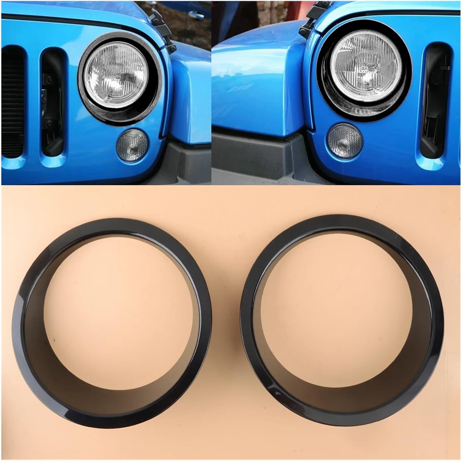 2pcs Black Headlight Lamp Ring Trim Cover Cap Decor Bezel Compatible with Jeep Wrangler JK JKU 2007-2018Color: BlackMaterial: ABS PlasticPlacement on vehicle: Front, Left, Right, ExteriorFitment Type: Direct Replacement or CoverType: Headlight Bezel Trim CoverInstallation: Stick On With Adhesive TapeItem included: 2 x Headlight Cover TrimsCompatible with Jeep Wrangler JK JKU2007-2018This Is Aftermarket Replacement Item ButWelcome to my auto parts store! We offer you sincere service to ensure that you feel at ease when purchasing and using. Wish you a pleasant shopping experience!!a