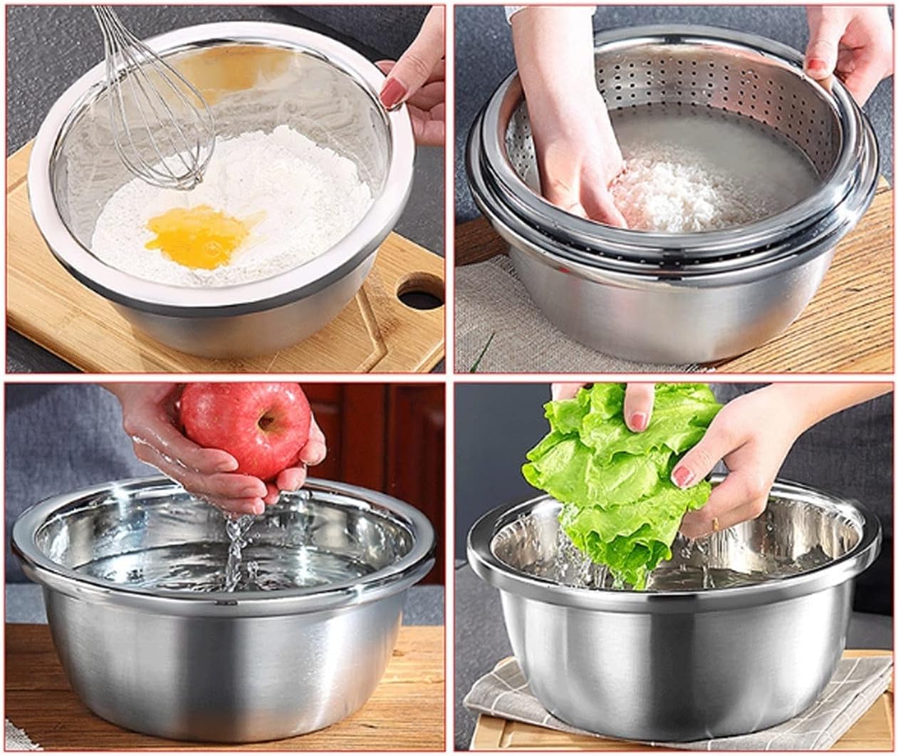 Name: 304 Stainless Steel Soup Basin 2 Piece Set Material: 304 Stainless Steel Specification 30cm: inner diameter 28cm, bottom diameter 21.5cm, height 12.5cm. 32cm: inner diameter 30cm, bottom diameter 23.5cm, height 13.5cm. One set solves all, 304 food grade stainless steel Soup Basin Drain Basin, complete in size, proficient in everything, and versatile. It can cook, bake and store food. Package Includes 1*Stainless Steel Mixing Bowls 1*Stainless Steel Drain Basin Service guarantee Please rest assured to buy, each product has been carefully selected to ensure product quality. If you have any questions about the product, please write to us for consultation. Our team is waiting for your letter 24 hours a day and will provide you with the best quality service.