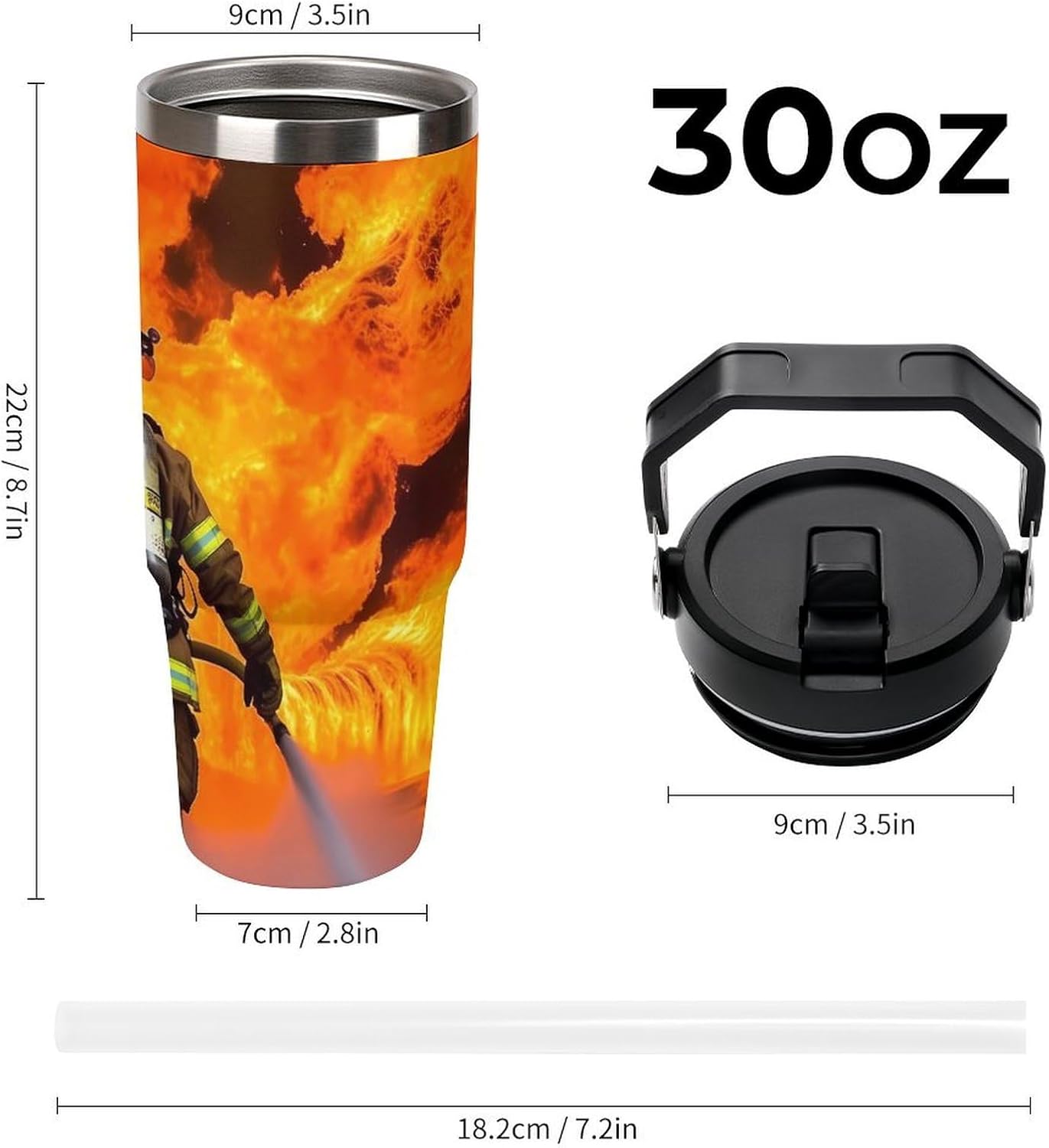 Our Firefighter Fireman Flame travel water bottle is made of food-grade stainless steel. The wide mouth design makes it easy to clean and add ice, and the powder-coated exterior is non-slip and durable, ensuring driving safety.Whether you prefer sipping or quenching your thirst, this personalized insulated mug has you covered. Featuring a splash-proof straw design, a sealing ring securely holds the reusable straw, and a drinking spout and full-coverage lid for enhanced leak-proof performance, this mug allows you to easily carry ice water to work, meetings, the gym, or on trips.You can give it to your friends and family as a birthday, Mother's Day, Father's Day, New Year's, Thanksgiving, and holiday gift. It's a thoughtful present.