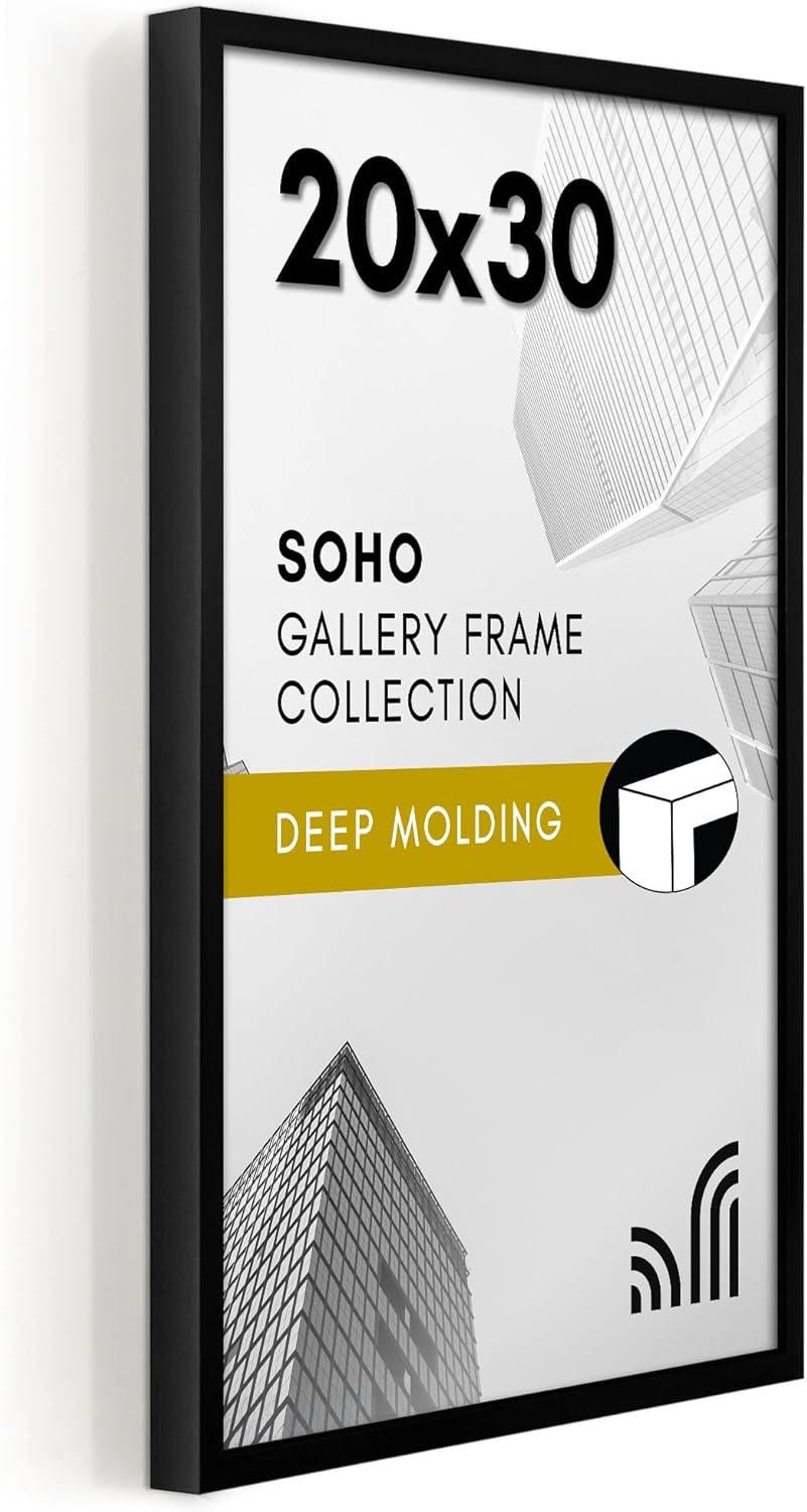 Americanflat 16x24 Poster Frame with Polished Plexiglass - Soho Collection - Gallery Style Deep Molding Picture Frames for Wall Display - Black