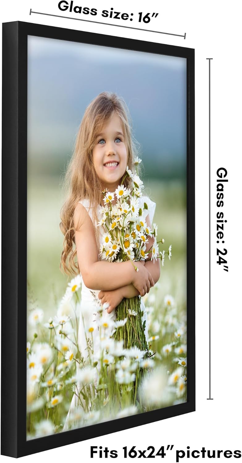 Give your memories the frame they deserve with our Americanflat 16x24 picture frame, designed to elevate every moment. Crafted from durable engineered wood-plastic composite with premium, deep molding, this is more than just a picture frame; it’s a game-changer for your decor. The polished plexiglass front offers a crystal-clear view while protecting your photos, posters, or artwork from dust and scratches. Because your favorite moments deserve nothing less than perfection. Versatility meets style with these gallery-style frames. Hang it vertically or horizontally using the included hanging hardware, and make it the perfect fit for any wall. It's an ideal way to showcase your cherished photos anywhere in your home or office. No matter how you style it, the black finish adds a timeless touch, instantly elevating your space. Refreshing your display has never been easier. The easy-to-use metal tab closures make swapping photos a breeze, so you can update your walls as often as you like. Plus, the sturdy backboard keeps everything securely in place, ensuring your memories always look their best. Why settle for boring walls when you can have a gallery at home? This photo frame is built to last, combining style and functionality to create keepsakes you’ll treasure forever. Order yours today and join thousands of satisfied customers who’ve transformed their spaces with Americanflat.