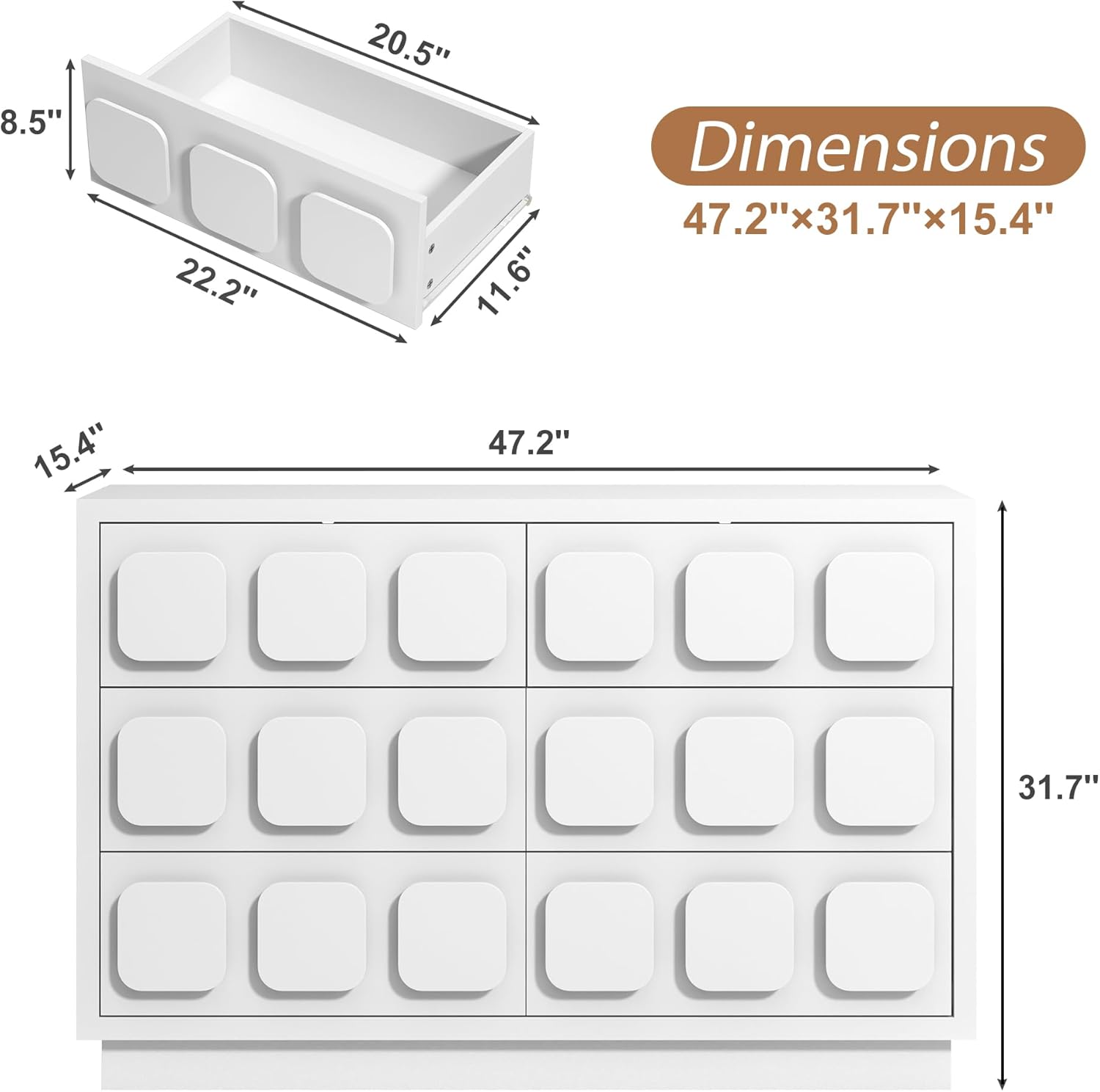 | Size | 15.4"D x 47.2"W x 31.7"H (6 Drawers) |