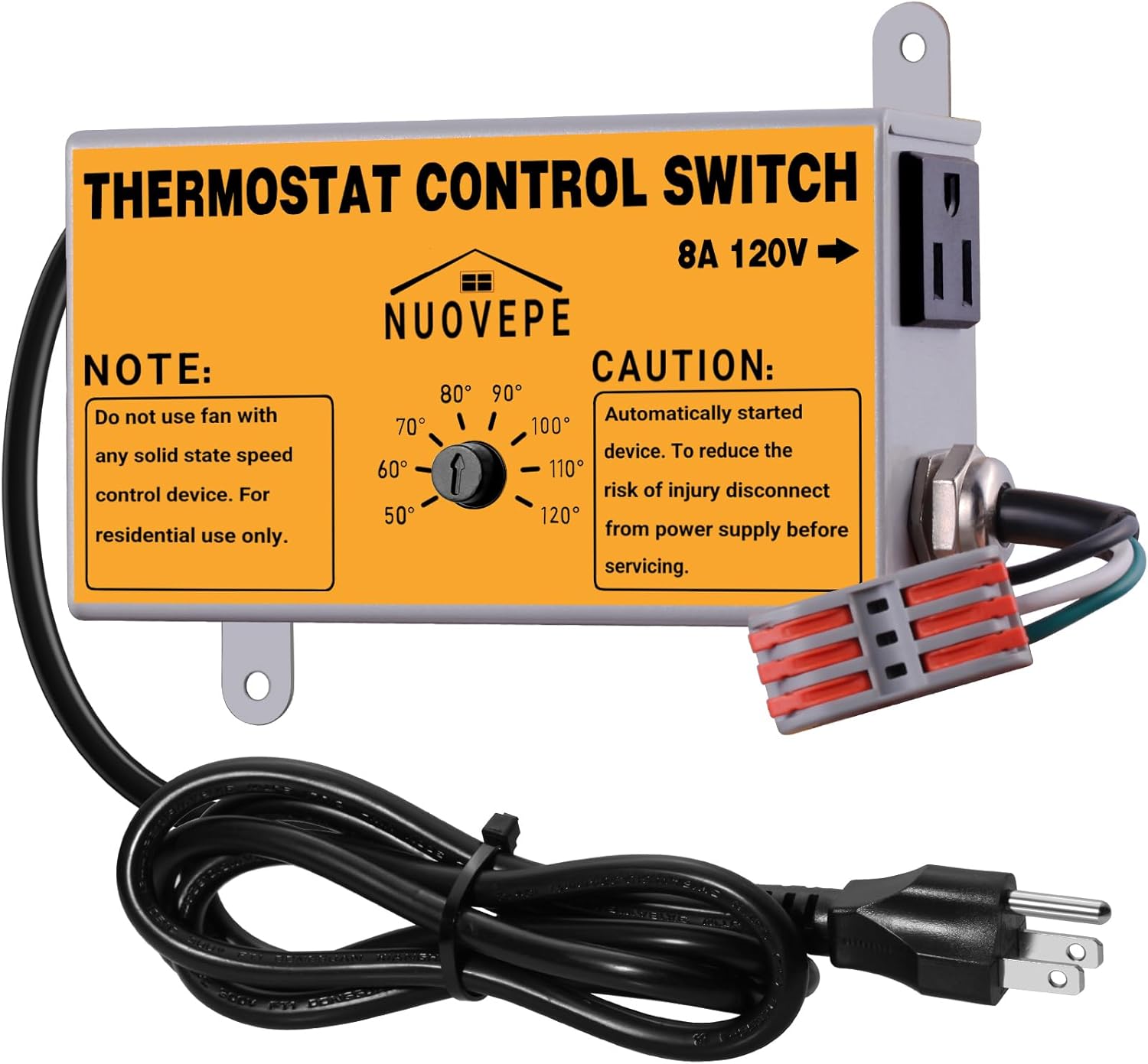 NUOVEPE attic temperature controller helps your ventilation system run only when it needs to, reducing noise, wear, and wasted energy. Set it once and let it quietly manage airflow in spaces like attics, greenhouses, garages, and small workshops, keeping the environment more comfortable for storage, equipment, or plants.Its compact body is easy to tuck into existing wiring or outlet locations, making it a practical upgrade when replacing old mechanical controls or adding ventilation to a new space.