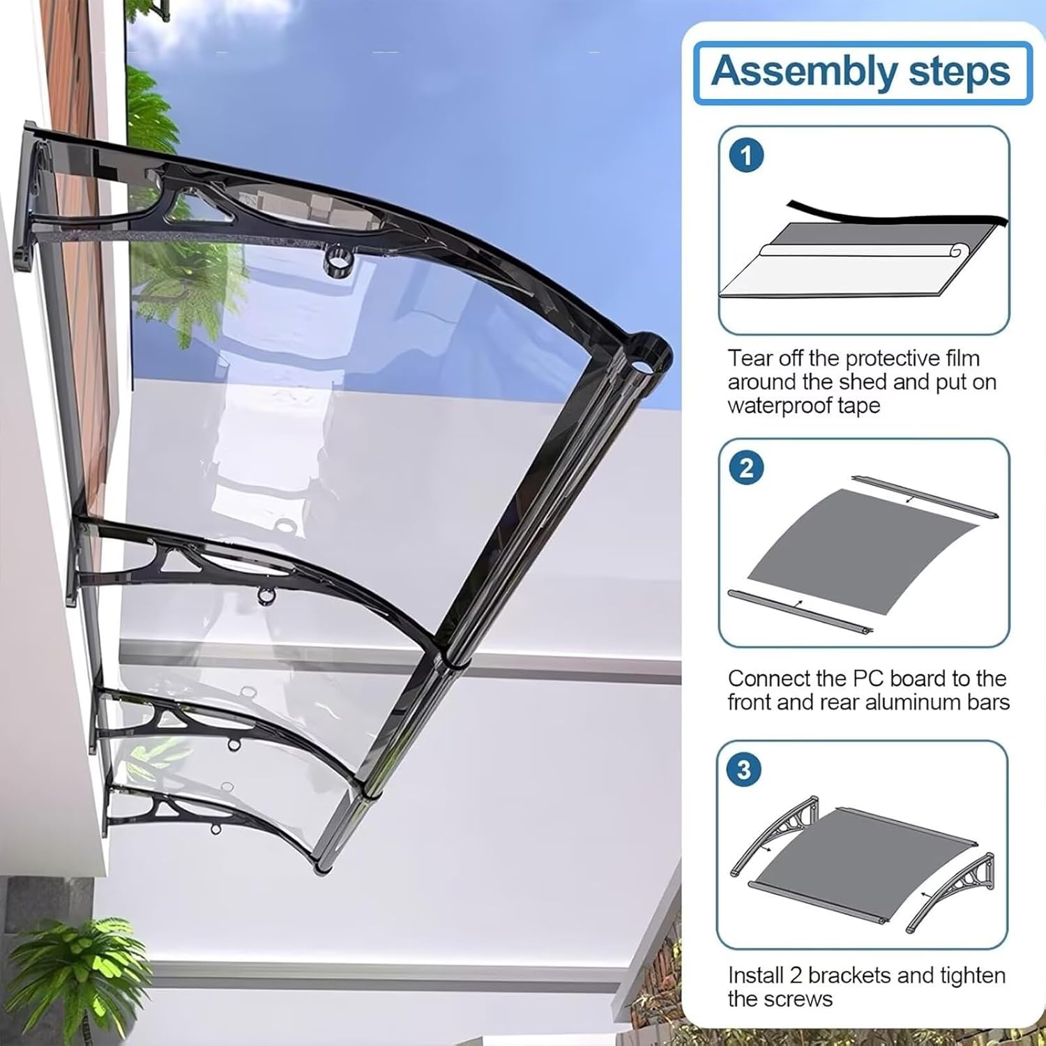 YQMHEZ awning canopy is ideal for windows, doors, patios, porches, and cafes, providing all-weather coverage for any outdoor space Our awning door canopy can protect you from rain, snow, sun, and harmful UV rays throughout the year It becomes a shelter and you can enjoy the rain scene without getting wet or any leaking water Name: Door Window Awning/Awning Door Canopy/Outdoor Door Patio Canopy/Patio Canopy Material: PC+Metal Mount Type: Wall-mounterd Assembly Required: Yes Customizable: color and size can be customized Package Included 1* Outdoor Canopy Application This front door awnings exterior is suitable for front and back doors, porches, windows, balconies, cafes, restaurants, shopping streets, garages, etc Notes Please measure the size of your window or door first, and then select the appropriate size