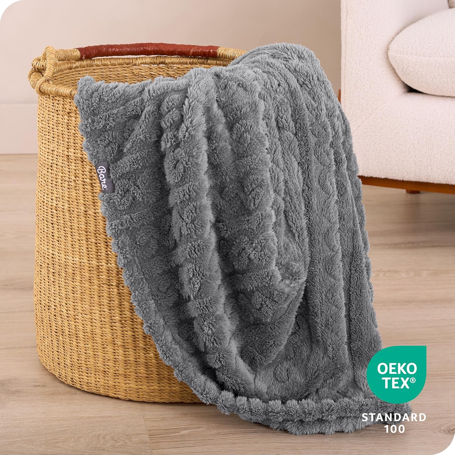 Bare Home Faux Shearling Blanket - Full/Queen Blanket - Blanket for Bed, Sofa, Couch, Camping, Travel, and Gifts - Warm & Lightweight - Fluffy & Soft Plush Blanket (Full/Queen, Solid White)