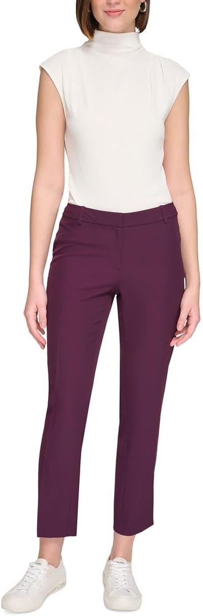 Update your work wardrobe with these slim-leg mid rise pants from Calvin Klein. Approx. inseam: 29" Mid rise Zipper and hook-and-bar closure at front; belt loops On-seam pockets at front; welt pockets at back Polyester, spandex Dry clean Imported Web ID: 16312021