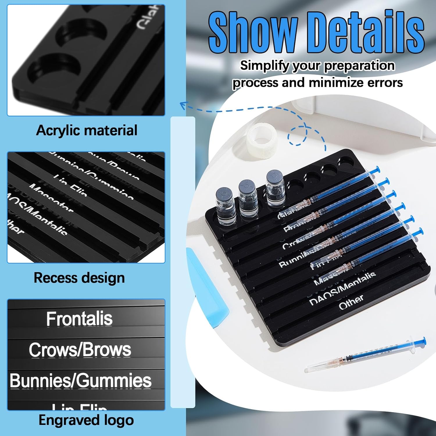 • Effortless Identification: dedicated slot labels allow easy labeling and identification of syringe contents; Simplify your preparation process and minimize errors, ensuring accurate treatments and a smoother workflow in your beauty practice