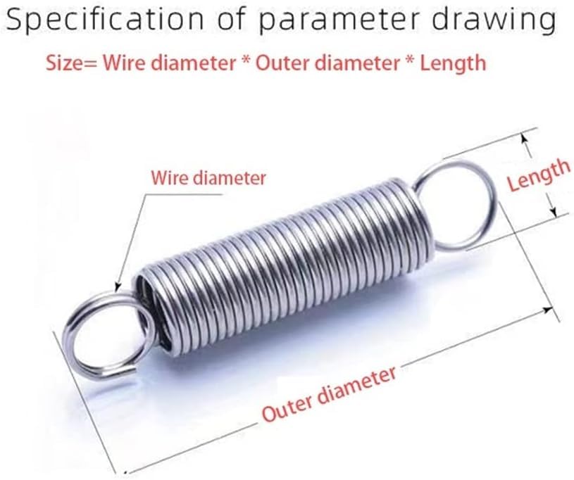 [Name]: Tension Spring [Width Diameter]: 0.5mm [Outer Diameter]: 5mm [Length]: 15mm, 20mm, 25mm, 30mm, 35mm, 40mm, 45mm, 50mm, 55mm, 60mm [Quantity]: 5pcs [Customer Support]: If you need any help, please feel free to contact us. We will give you a satisfactory solution within 24 hours.