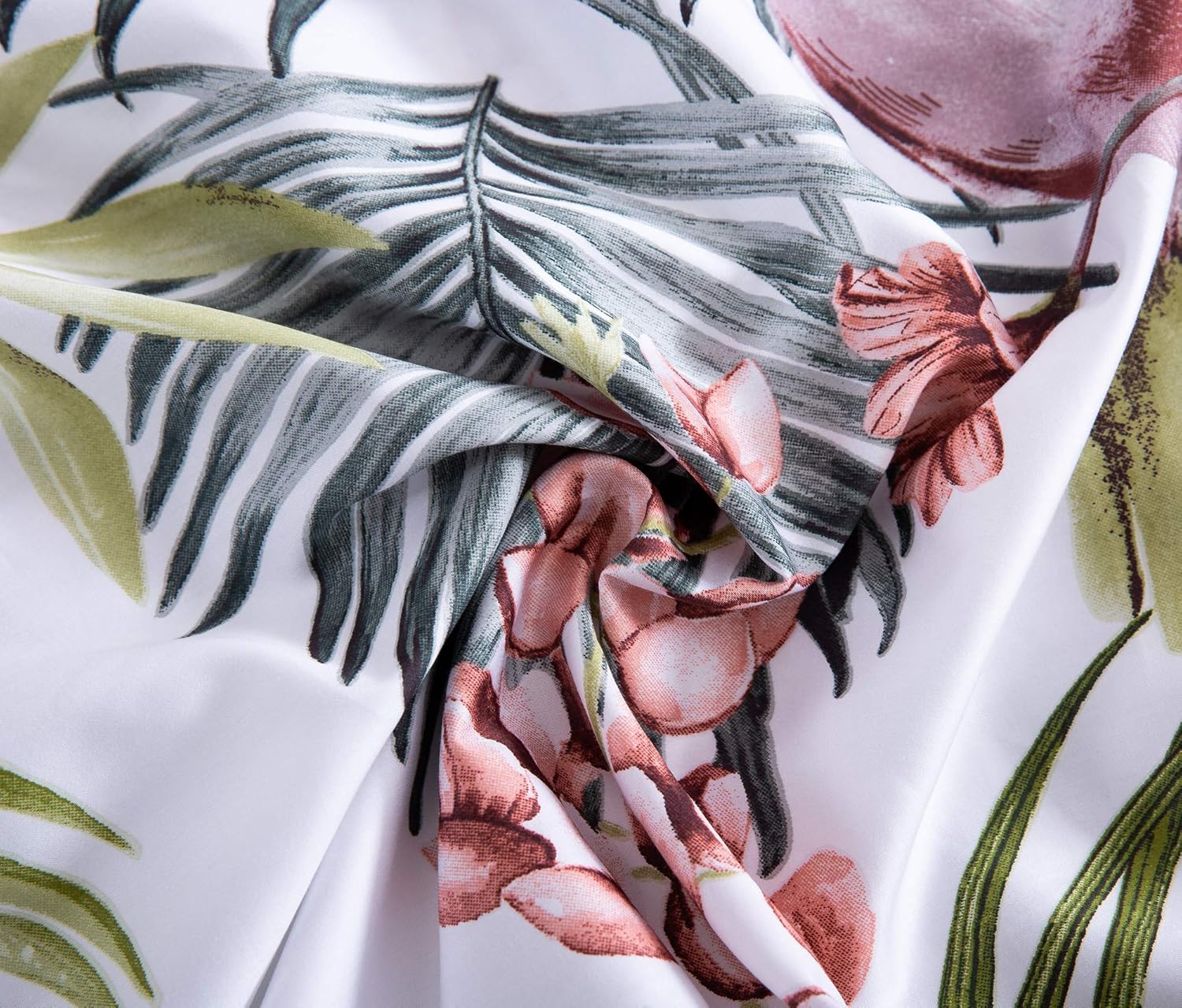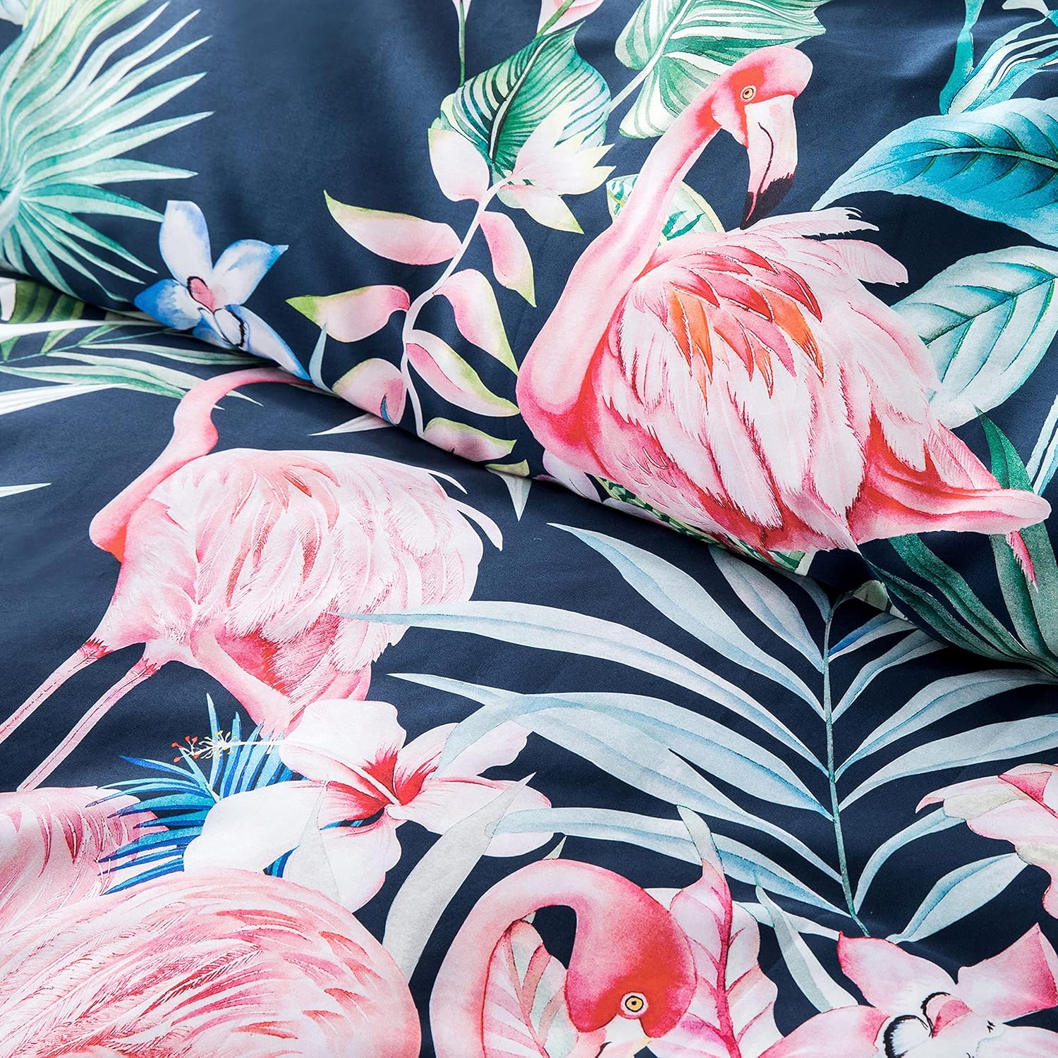 Tropical Flamingo Duvet cover and Pillowcases Set Palm leaf Exotic Island Flowers Trees Branches Paradise Birds Bedding Jungle Plants Modern Botanical Print. Beautiful combination of deep green, white and rose gold colors. Available in sizes: Twin, Full/Queen, King and Oversized King.