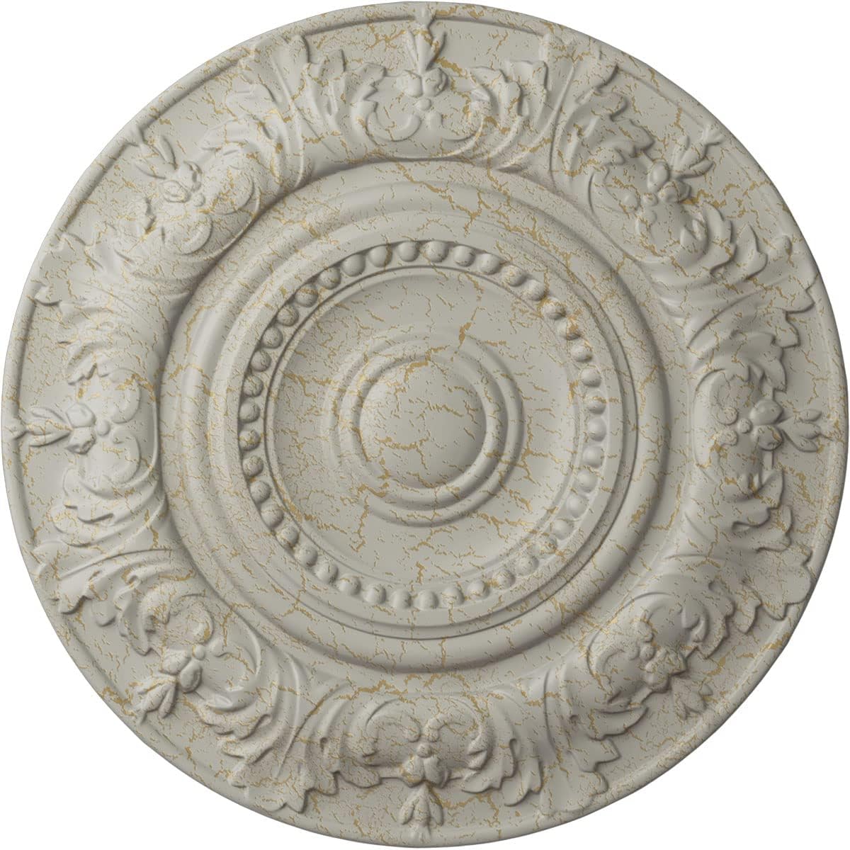 Our ceiling medallion collections are modeled after original historical patterns and designs. Our artisans then hand carve an original piece. Being hand carved each piece is richly detailed with deep relief, sharp lines, and a truly unique touch. That master piece is then used to create a mould master. Once the mould master is created we use our high density Urethane foam to form each medallion. The finished look is a beautifully detailed, light weight, solid construction, focal piece. The resemblance to original plaster medallions is achieved only by using our high density Urethane and not vacuum formed, "plastic" type medallions. - medallions can be cut using standard woodworking tools to add a hole for electrical or a ceiling Fan canopy. - medallions are light weight for easy installation. - they are fully primed and ready for your paint. If you have any questions feel free to ask. These are in stock and available for immediate shipment.