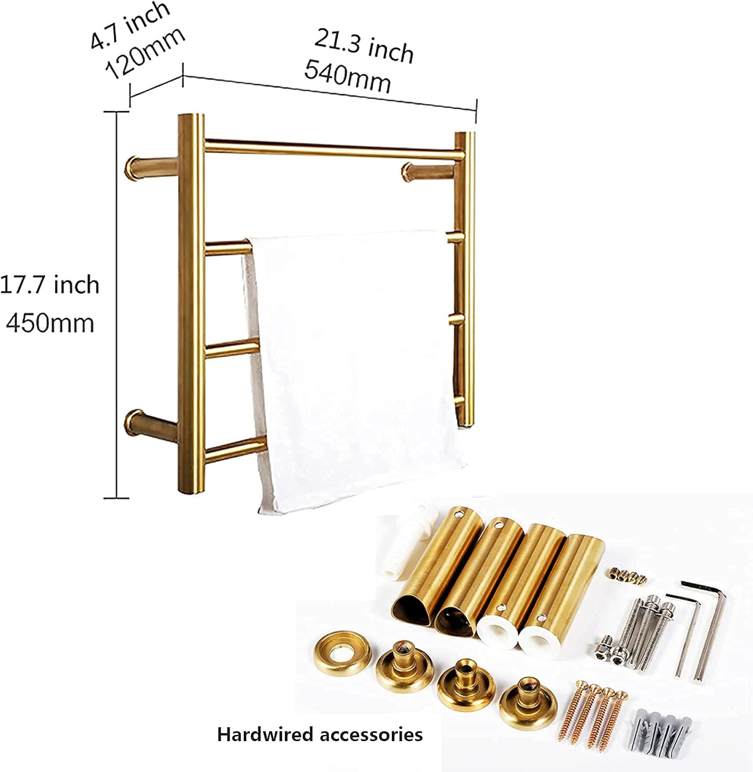 Our towel heater promises to bring comfort and convenience to your homeUpgrade your towel rail! ! After a long day, you can relax here, enjoy the highest quality towel heater of a comfortable and warm lifeSpecification:Product Name: Electric towel warmerStyle: ModernMaterial: 304 stainless steelVoltage: US 110V-120V, EU 220V-240VPower: 58WFrequency: 50HZHeating Time: 5 minutesWorking Temperature: 45-50 °CWaterproof Rating: IP56Product Size:450*540*120mmMain Functions: Dry, constant temperature, waterproof On/Off, high temperature resistantWhat's included:1* Towel Warmer Rack1* Installation AccessoriesEnglish User Manual x 1Note:Please allow 2-3cm discrepancy due to the manual measurement.Color display may vary on different monitors, so the picture may not exactly reflect the color of the itemWarm Tips:Towels and others are not includedWe suggest you ask a qualified electrician to install this item