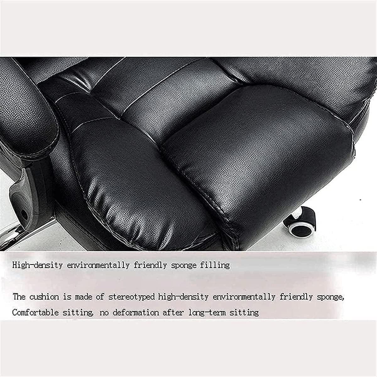 Product Specifications: Fabric material: PU leather Size:as the picture shows Handrail: fixed handrail Footrest: telescopic footrest Chair foot: steel five-star foot Chair wheel: Silent wear-resistant wheel Color: black Applicable space: living room, bedroom, study room, commercial place Package Included: 1 x Office Chair 1 x Installation Notes(other accessories demo in the picture is not included.) Welcome to our store, If you need more products, please click my store to select,a variety of styles for you to buy, I wish you happy every day!