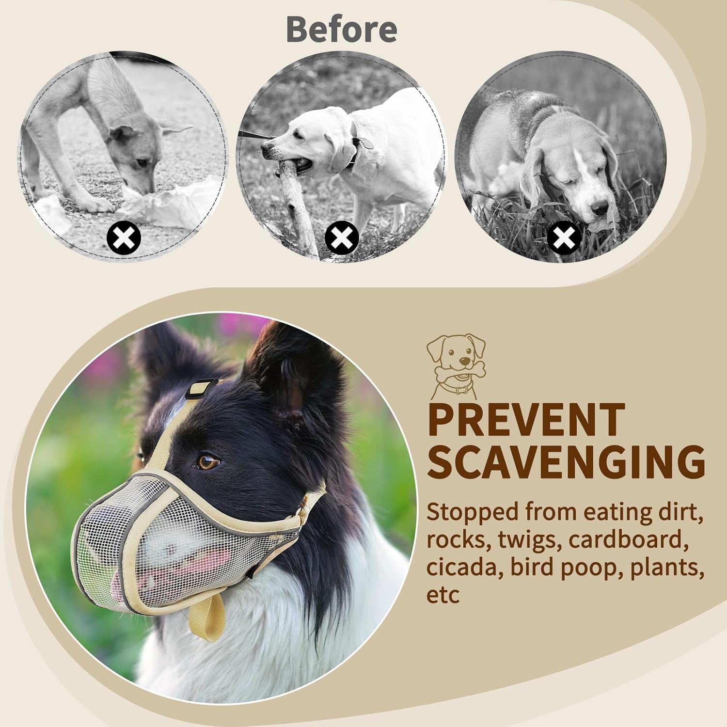 Full-covered Mesh Dog Muzzle(Black, L) and Closed Mesh Dog Muzzle(Khaki, L) Bundle for Medium to Large Dogs to Prevent Dogs from Scavenging Licking Biting Chewing