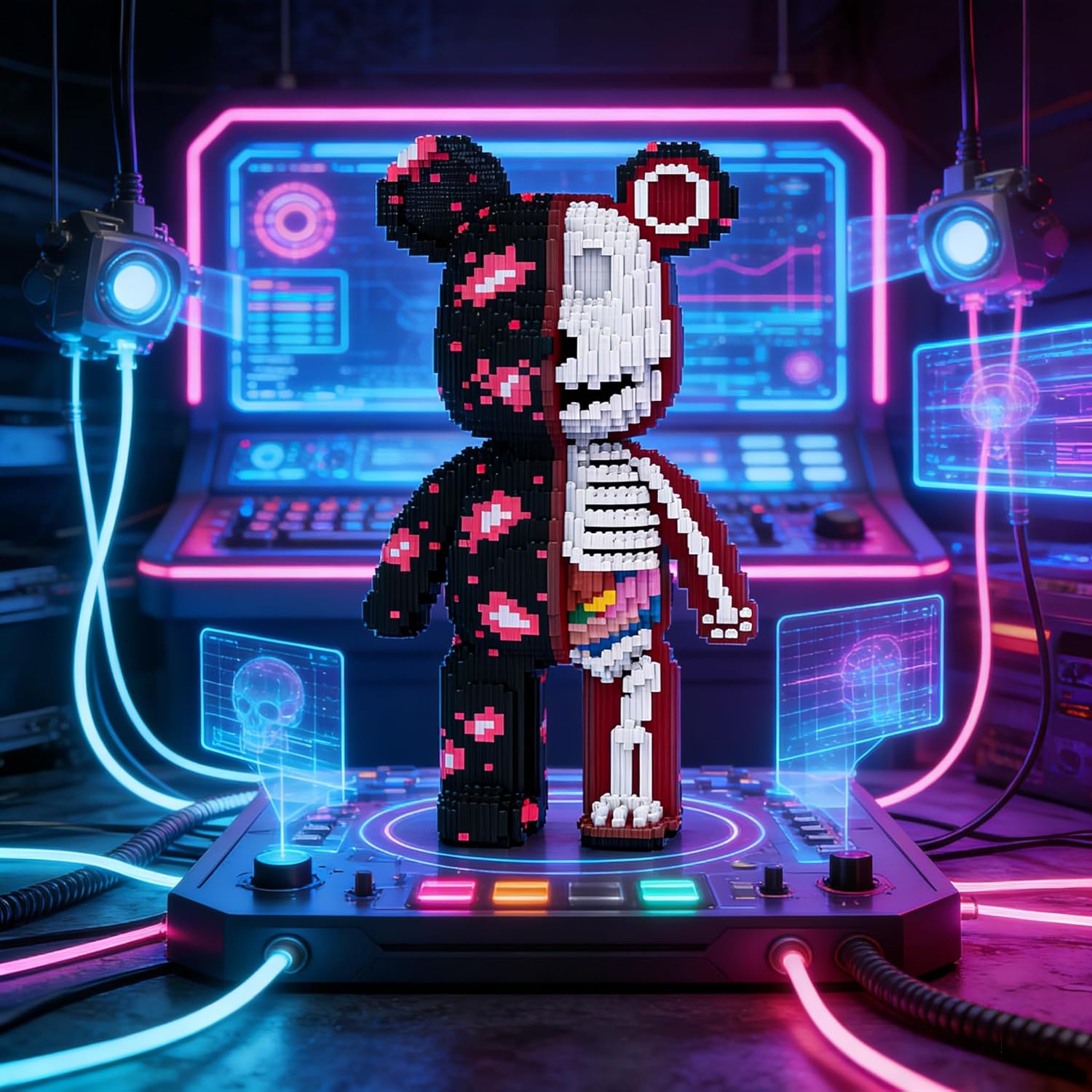 • Bear Block: This graffiti skeleton bear block innovatively combines the image of a black bear with fireworks elements. On one side, it showcases the shape of a black bear and a dazzling fireworks pattern, while on the other side, it ingeniously presents the internal skeletal structure, making it a new breakthrough in block art.