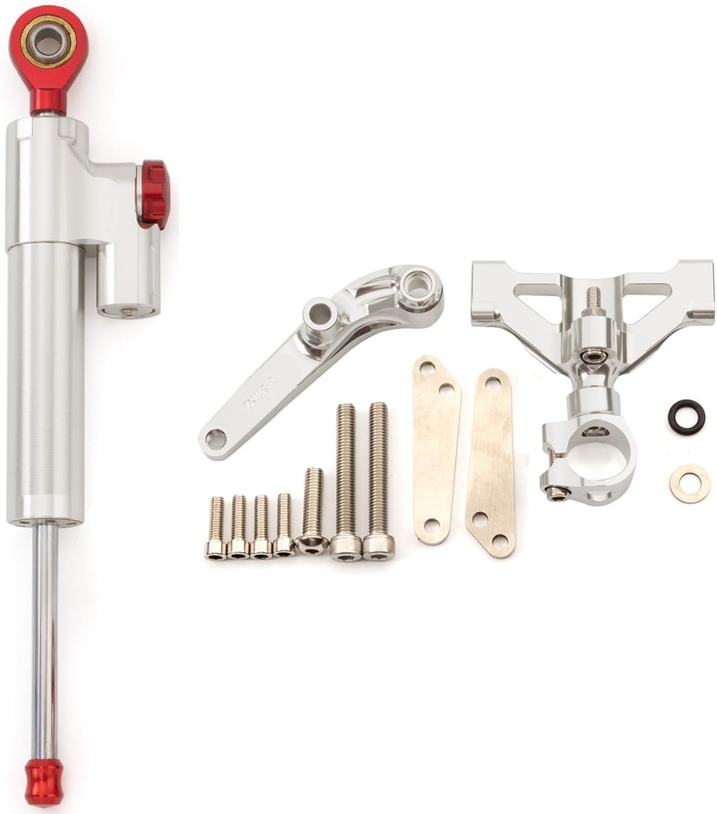 Fitment: for ZZR1400 ZX14 2006-2016 Feature: 100 % brand new Material:T6061-T6 Aluminum (High Quality Material, Light grade & Light-weight) Finish: CNC & Anodized (durable and not easy to fade) Color : Show as pictures If you need other colour,please leave me a note after payment, thanks! Weight: 1 LB Others: Perfect fit and no modification is needed, No installation instructions Extraordinary advantages: 1.His risk is minimal. High stability 2.The dampers are fully adjustable and can be adjusted in 22 positions so there will be a position for every rider 3.The twin-tube clamp ensures that the clamping force of the tube clamp does not obstruct the piston 4.Nitrogen pressurised heat expansion reservoir prevents the forming of air bubbles 5.Mounting kits went through countless tests through any riding conditions Package Included: 1x Adjustable Steering Damper & Stabilizer Mounting Kit Full Set Note: 1.After installation, turn the head to the very right and very left to check whether there is enough room for the activity of steering damper or not 2.Check if the steering damper and its kit reach the motorbike or oil tank his kind of risk to a bare minimum. Tank slappers and vibrations are intercepted by the damper About after-sales service: Provide three months free warranty We provide high quality products and best service to each customer Everyone, If you have any questions, please do feel free to connect with us