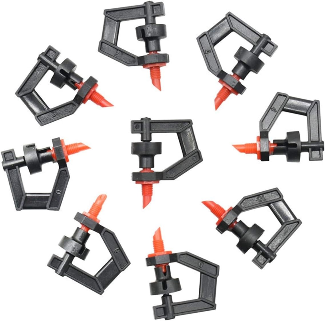 Easy to use-connect the water connector to the connector360 degree automatic spraying, uniform spraying, wide coverage,Spraying like rain will not produce strong hydraulic impulses on agricultural vegetables or other seedlings.Product name: G-type rotating refraction nozzleWorking pressure 1.5-3.0kgSpray radius 2.8-4 mFlow rate: 40-140L/HPacking quantity: 300PcsInstallation: Usually, the PE pipe is punched and connected with a joint.It can also be connected with rigid pipes, such as PVC or PPR.