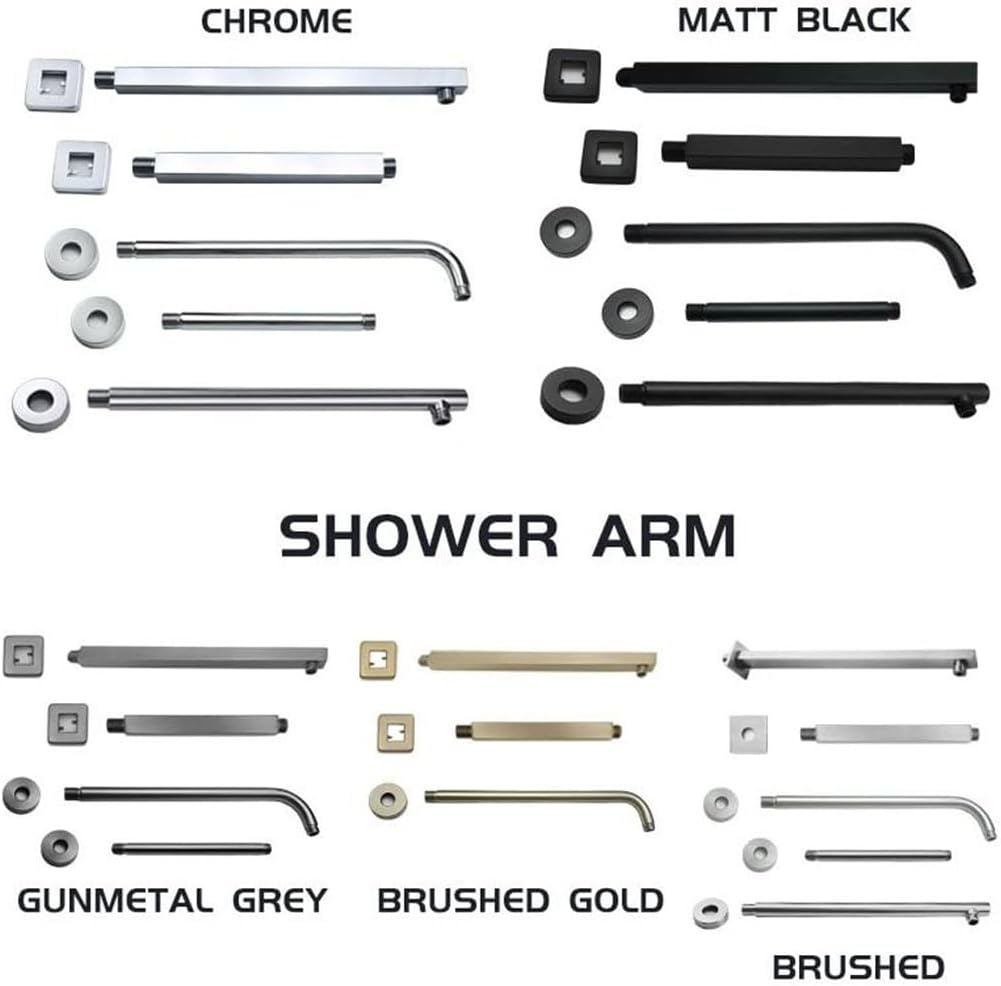 Material:STAINLESS STEELMaterial:SUS304 Stainless SteelSurface Finishing:NoneHeight Adjustable:NoCertification:NoneProduct Type:Shower ArmShape:Round And SquareInstallation:Wall Mounted Or Ceiling MountedInterface:Standard G1/2Color:Matt Black / Chrome / Brushed / gray9 / Brushed Gold