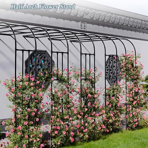 Transform your garden into a captivating wonderland with our half garden arch. This stunning archway boasts an elegant and unique design, reminiscent of fairy tale landscapes, perfect for creating memorable outdoor spaces. Crafted from high-quality galvanized steel, coated for durability, it stands strong against the elements, ensuring it remains a lasting feature in your garden. Ideal for enhancing your garden's aesthetic, this arch serves as a beautiful focal point while offering sturdy support for climbing plants and flowers. Imagine lush vines and vibrant blooms intertwining around the arch, creating a dreamy, enchanting atmosphere that elevates outdoor gatherings, weddings, or quiet moments in nature. Available in various sizes—ranging from W60xH240 cm to W300xH240 cm—this versatile garden arch fits perfectly in any space, whether it's framing an entryway, accentuating a pathway, or providing a backdrop for your floral displays. Choose from elegant black, green, or white finishes to complement your garden's style. For optimal use, ensure a soil depth of 8-12 inches for maximum stability against wind. To maintain its beauty, simply wipe with a damp cloth and steer clear of harsh cleaners. Please note that the product color may vary slightly due to different monitor settings and lighting conditions. Enhance your garden's charm and create a picturesque outdoor experience with our half garden arch—a perfect blend of functionality and elegance, designed for those who appreciate the beauty of nature.