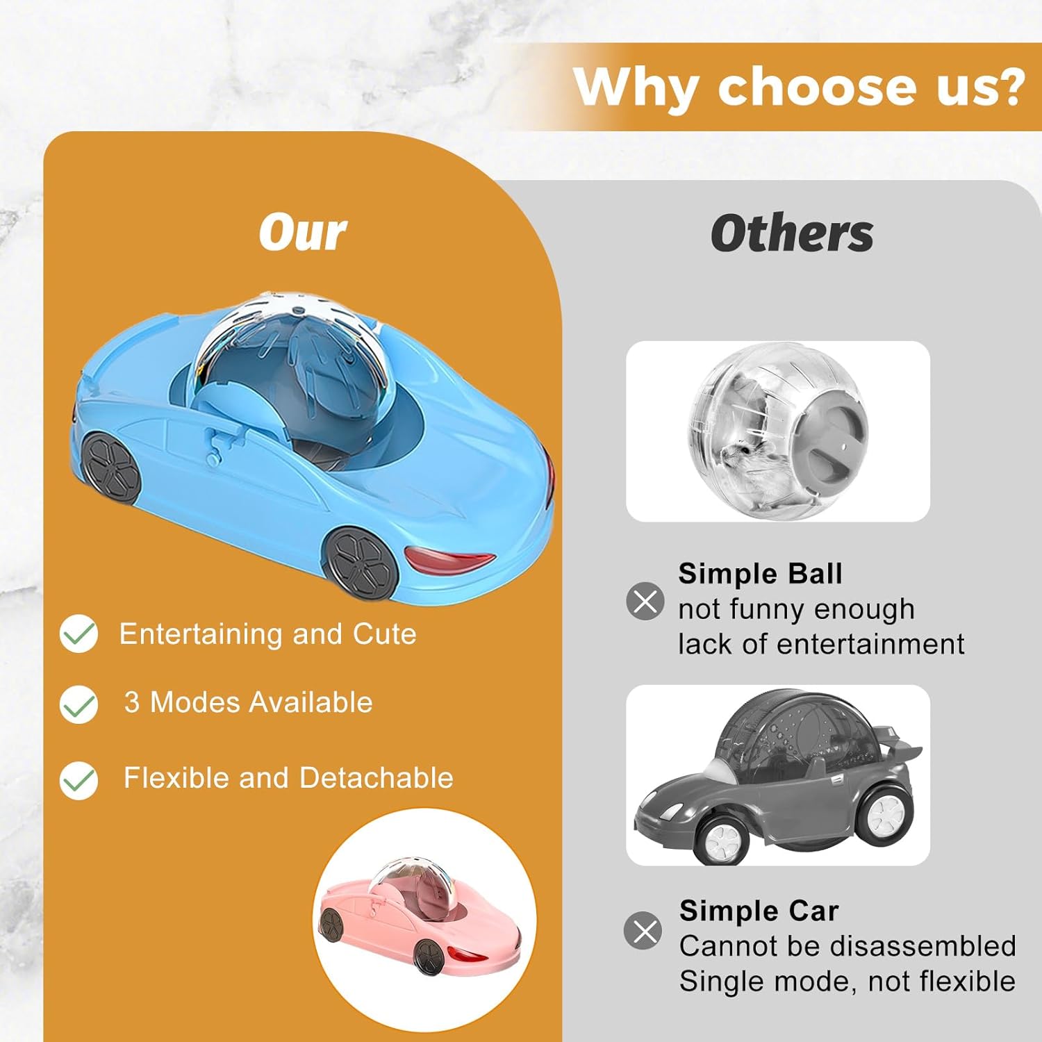 Specification: Product Name: Hamster Exercise Ball Sports Car Color: Pink, Blue Product material: ABS+silicone hose+PVC Size: 6.5*11.6*5.5 in Weight: 420g Package Includes: 1 * Hamster Exercise Ball Sports Car Note: 1.Due to the light and screen difference, the item's color may be slightly different from the pictures. 2.Please allow 1-2 cm differences due to manual measurement. 3.If you happen to receive a defective product, please reach out to us immediately. Rest assured that we’ll take prompt action to replace the affected item and ensure that you’re able to enjoy your product.