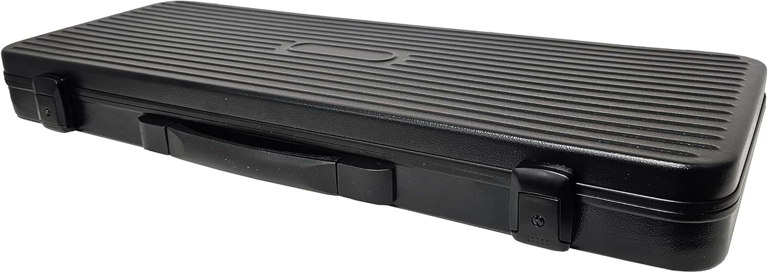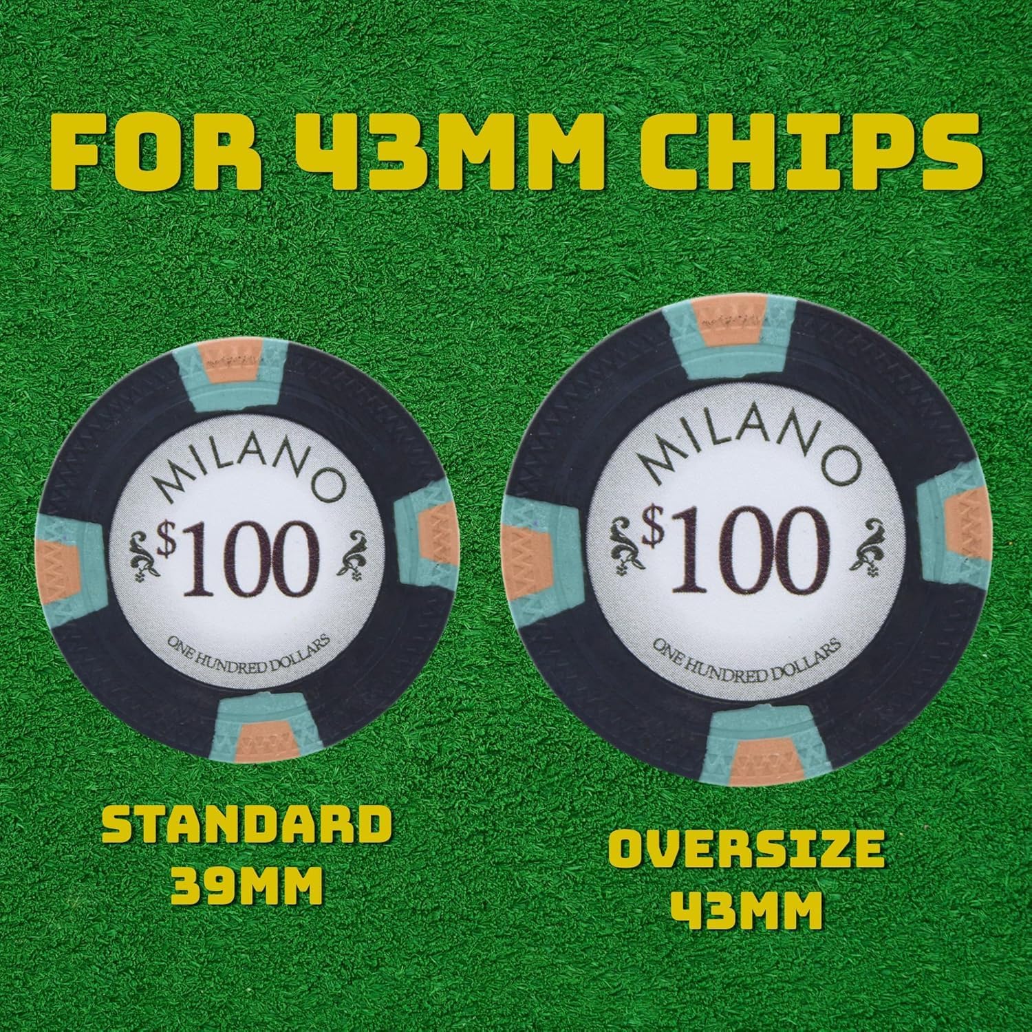 The future of poker is bigger, and now there's finally a case built to match. This heavy-duty carrying case is specifically designed to hold up to five hundred 43mm poker chips, which are 10% larger than standard chips, and are quickly becoming the new favorite among serious players and collectors. With larger chips comes the need for a better storage and transport solution, and this case delivers. Molded tray offers 10 precision-fit rows that each hold 50 oversized chips Dedicated spaces for two standard decks of playing cards and a set of 16mm dice Exterior is made from rugged ABS plastic, which resists dents, rust, and warping, making it perfect for travel and long-term care-free storage Two locking clasps keep the case securely closed during transport, while the sturdy briefcase-style handle ensures a comfortable carry A layer of convoluted protective foam inside the lid cushions your chips and prevents shifting during transit