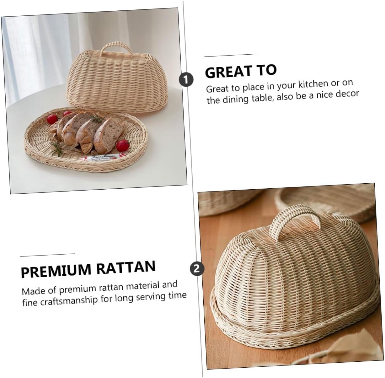 Package Include 1 x Set of Food Cover with Tray Features - Color: Khaki. - Size: 35.00X27.00X18.50cm/13.76X10.61X7.27inch. - Material: Rattan. -Product Info:Rattan food cover - Made of premium rattan material and fine craftsmanship for long serving time. - This cover would protect your food from and , give you a healthy eating environment Fruit Bread Cover. - The effect of and is more significant Kitchen Accessory. - Great to place in your kitchen or on the dining table, also be a nice decor food cover lid rattan. - Simple design, simple but not monotonous, using excellent materials, environmental protection and not easy to break.Goods Descriptionwoven snack fruit basket Large-capacity storage for more fruit and food.rattan food cloche Are you looking for a , yet food cover? Are you in search of a sturdy, trustworthy food cover that can keep your food safe and clean, and serve you for a long term? , ! Our decorative food cover must meet your needs