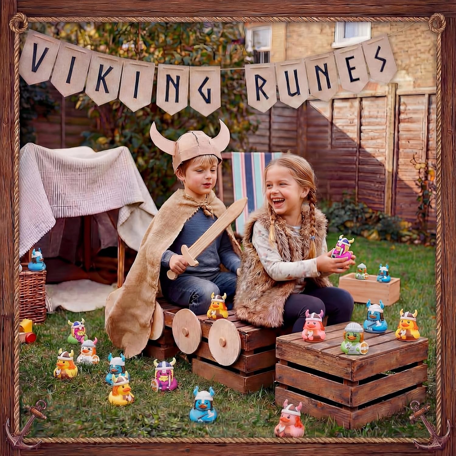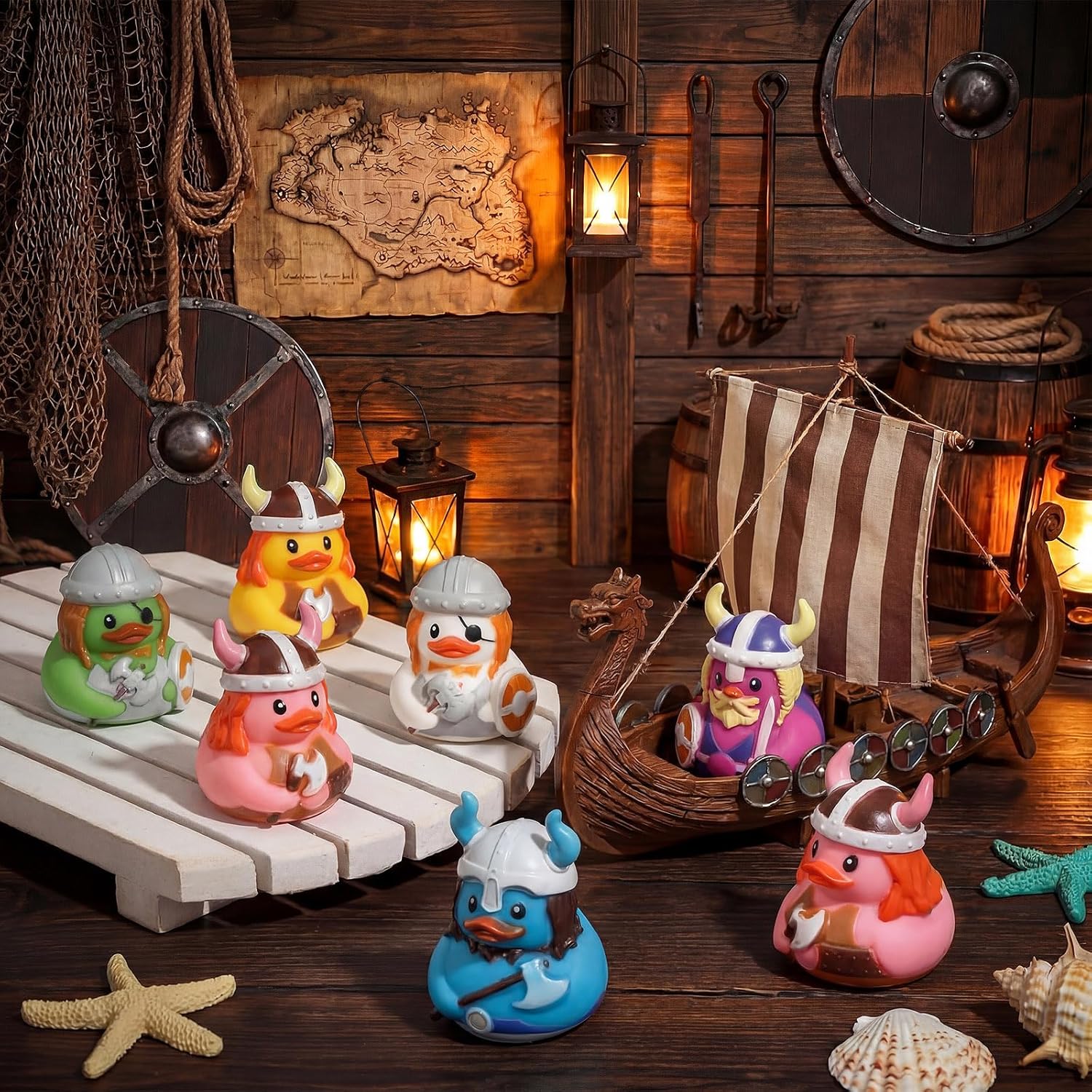 Features: Mini duckies for kids: The mini size makes these rubber duckies perfect for party favors, stocking stuffers or even bath time fun, encouraging kids to enjoy their bath with cute pirate theme duckies. Viking party favors: Stand out with novel and special viking party favors that are sure to be a hit at your viking parties, pirate parties, knight parties, medieval parties, Halloween parties or any celebration, adding a touch of fun and whimsy to the event. Specifications: Material: rubber Color: yellow, blue, purple, pink, white, green Size: as picture shown Package includes: 48x Viking party favor ducks Notes: Manual measurement, please allow slight errors on size. The color may exist a slight difference due to different screen displays. Suitable for people over 6 years old, and it's recommended to use under the supervision of adults in case of choking risk.