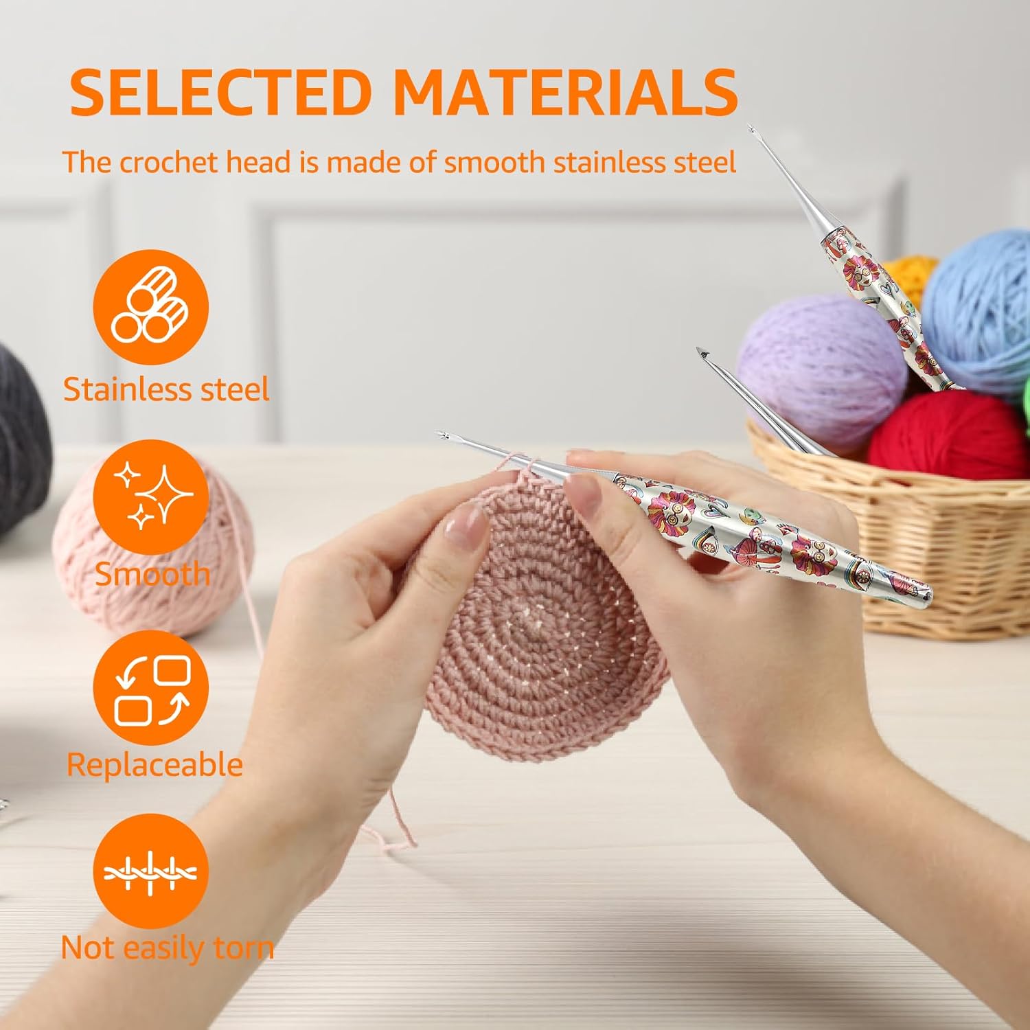 Parts List:Handle x 1Hook head x 9 (3.0 mm-8.0 mm)Yellow cloth x 1Leather tape measure x 1Marking buckle x 10 (color random)Scissors cover x 1Scissors x 1Pin x 9Storage bag x 1Description:The smooth stainless steel glides effortlessly through yarn, preventing snags and speeding up knitting. Meanwhile, the oval handle provides a reducing fatigue grip, and the storage bag case keeps everything organized.Key Feature:Control: It provides a safe and comfortable grip experience, reduces hand stress and increases control while weaving.Rich Set: We will offer many accessories for you to utilize together.Specification:Product Name: Metal Knitting Needles KitColors option: Red or OrangeMaterial: Stainless steelSize: Storage bag: 25.5 x 13.5 cm / 10.04 x 5.31 in, Crochet: 16 cm / 6.3 in, Replacement head: 7 cm / 2.76 inCrochet head specifications: 3.0 mm / 0.12 in, 3.5 mm / 0.14 in, 4.0 mm / 0.16 in, 4.5 mm / 0.18 in, 5.0 mm / 0.20 in, 6.0 mm / 0.24 in , 7.0 mm / 0.28 in, 8.0 mm / 0.31 inNote:1. There may be slight color differences between the product picture and the actual item. We will do our best to display the color as accurately as possible.2. Please allow slight dimensional discrepancies due to manual measurement.