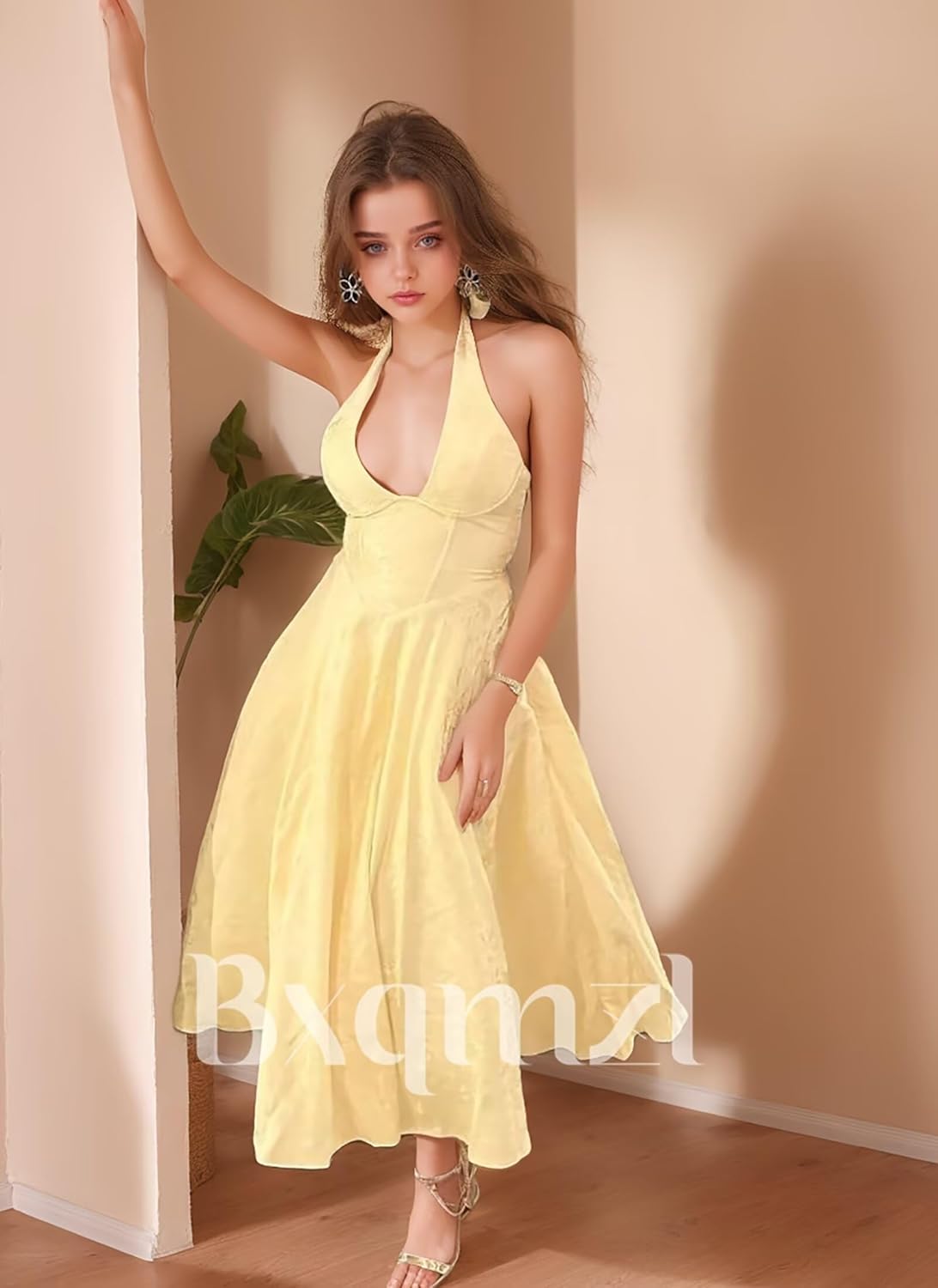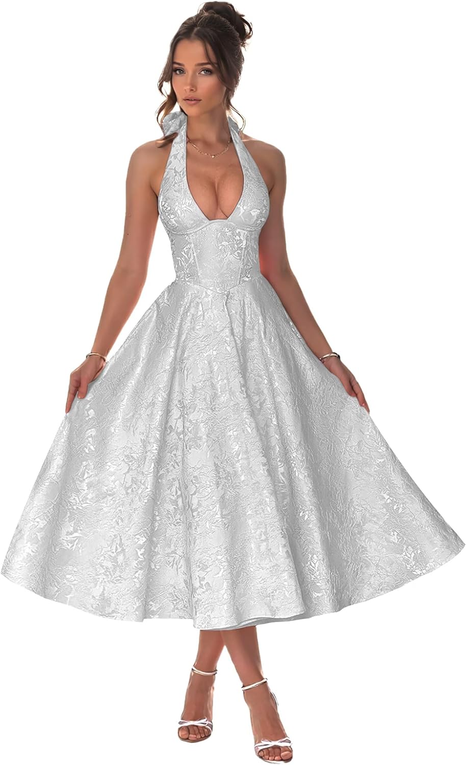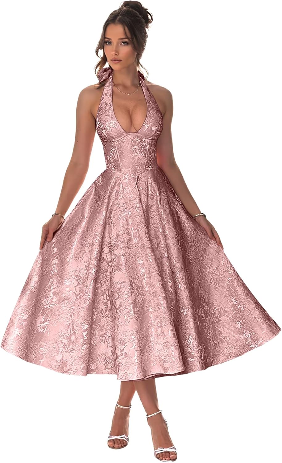 | Fabric Type | Jacquard Satin Prom Dresses for Women 2024 Halter Long Ball Gown Tea Length Gowns and Evening Dresses |