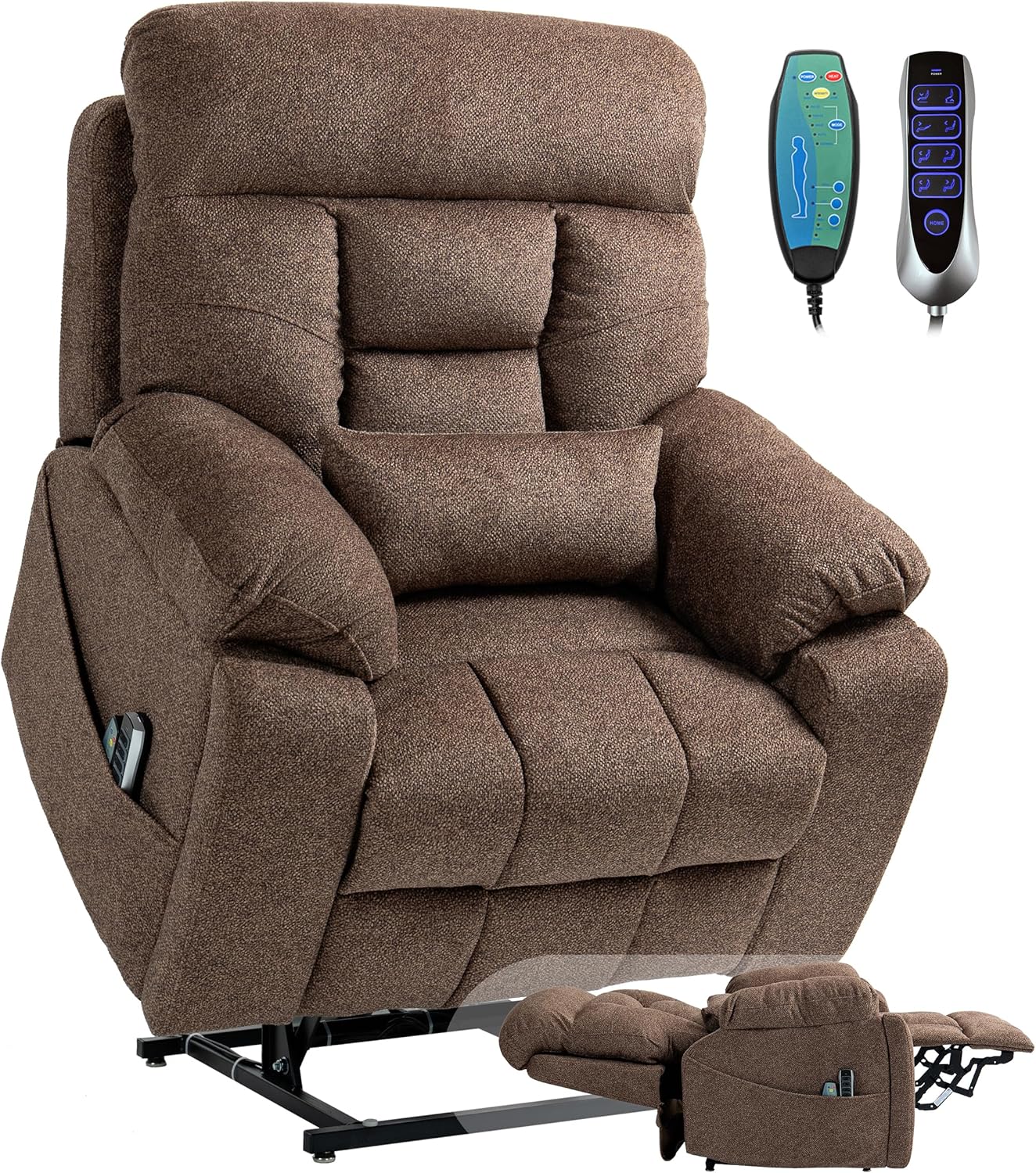 | Included Components | 2 remote controllers, Lift Chair body, Power supply and power cord, Two Cup Holders, a pillow |