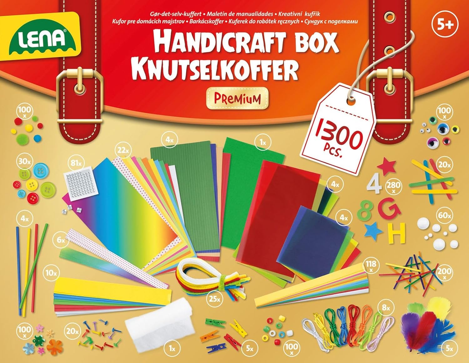 | Item Type Name | Premium XXL craft case with 1300 pieces, material for crafts, with foam rubber, coloured paper, beads, flowers, pompom, ribbons, buttons, googly eyes and much more, for children aged 5 and over |