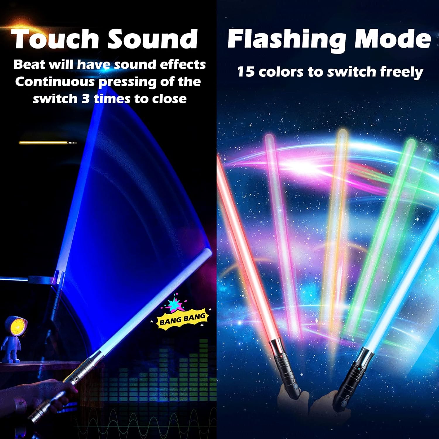 【15 Light Colors】There are 15 colors that can be switched at will, cold white, red, yellow, green, blue, purple, etc. Simply press the button on the handle to start the LED light effect.