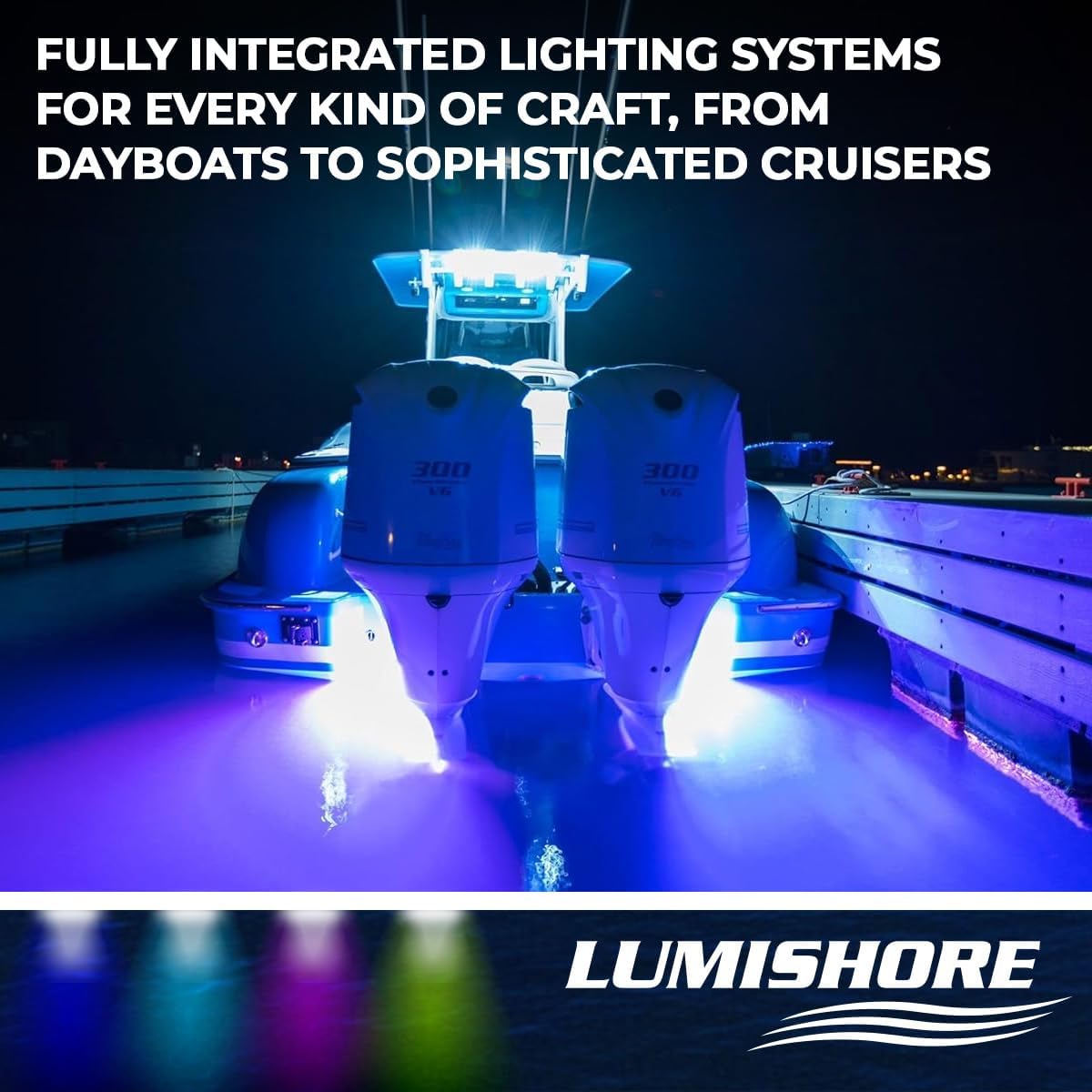 The ECLIPSE 4 Inch Flood Light generates a powerful 3,375 lumens (1,500 fixture lumens) of crisp, white light to illuminate the hardest to see places onboard. Wide reaching oval beams of 70° - 90° will provide bright light wherever you need it. Perfect for deck, cockpit lighting, or for general security purposes, Lumishore's low profile articulating flood lights are ideal for exterior mounting on cabin tops, T-tops, arches, transoms and radar pedestals. Designed to withstand the harshest marine environments, with a IP68 rating, and in marine-grade powder coated aluminium housing. The lighting units themselves are beautifully built, enhancing your boat’s fit-out, even when not in use. Dimmable control as a standard.