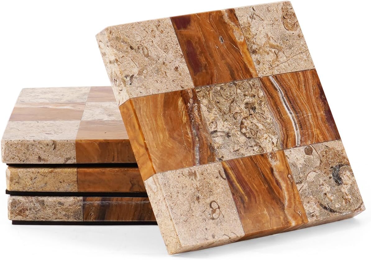 Elevate your hosting essentials with the Earthen Tones Checkered Marble Coasters, a striking blend of craftsmanship and function. Each coaster is handcrafted from natural marble in a bold Oceanic & verona checkered pattern, adding a graphic pop to any coffee table, bar cart, or dining setting. Designed for both durability and style, these coasters protect surfaces while doubling as mini works of art.