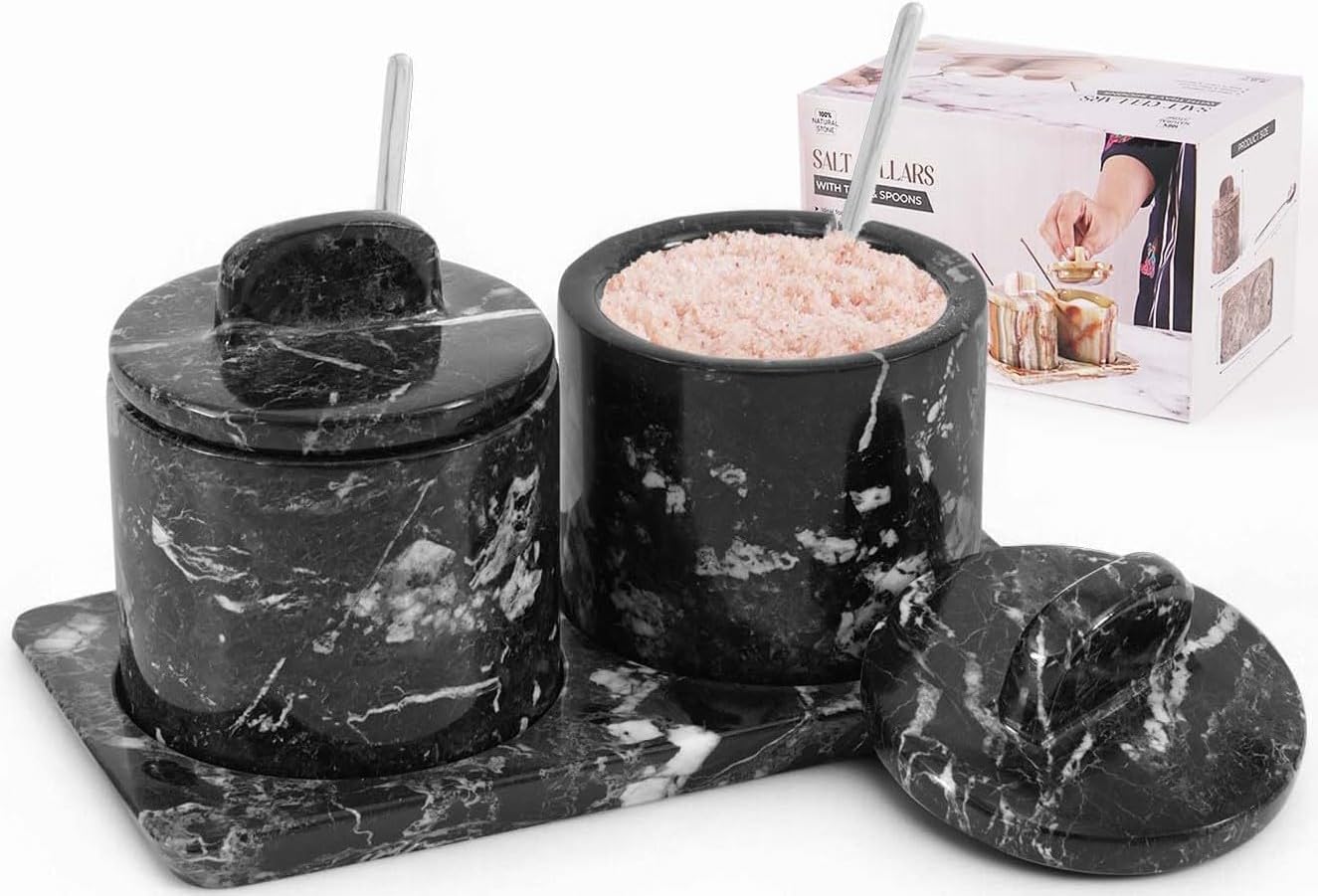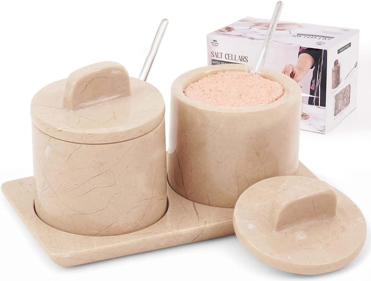 Upgrade your kitchen with this elegant marble salt cellar with tray – the perfect seasoning container for keeping your favorite spices fresh and easily accessible. Designed for convenience and style, this countertop organizer is ideal for storing everyday spices, herbs, sugar, coffee, and more. Crafted from premium natural marble, it adds a sophisticated touch to any modern or rustic kitchen decor. Its sleek design pairs beautifully with spice jars, salt and pepper shakers, and other storage containers, making it a stylish addition to your kitchen countertop, spice rack, or dining table. This versatile marble container works perfectly as a sugar bowl, coffee holder, or herb storage jar. Whether you're preparing meals or hosting guests, this multi-functional seasoning box brings elegance and order to your cooking space. The included tray and lid offer both functionality and charm, while the compact size makes it perfect for small kitchens or open shelves. Ideal for kitchen storage, home organization, and countertop decor, it's a must-have accessory for home chefs and entertainers alike.