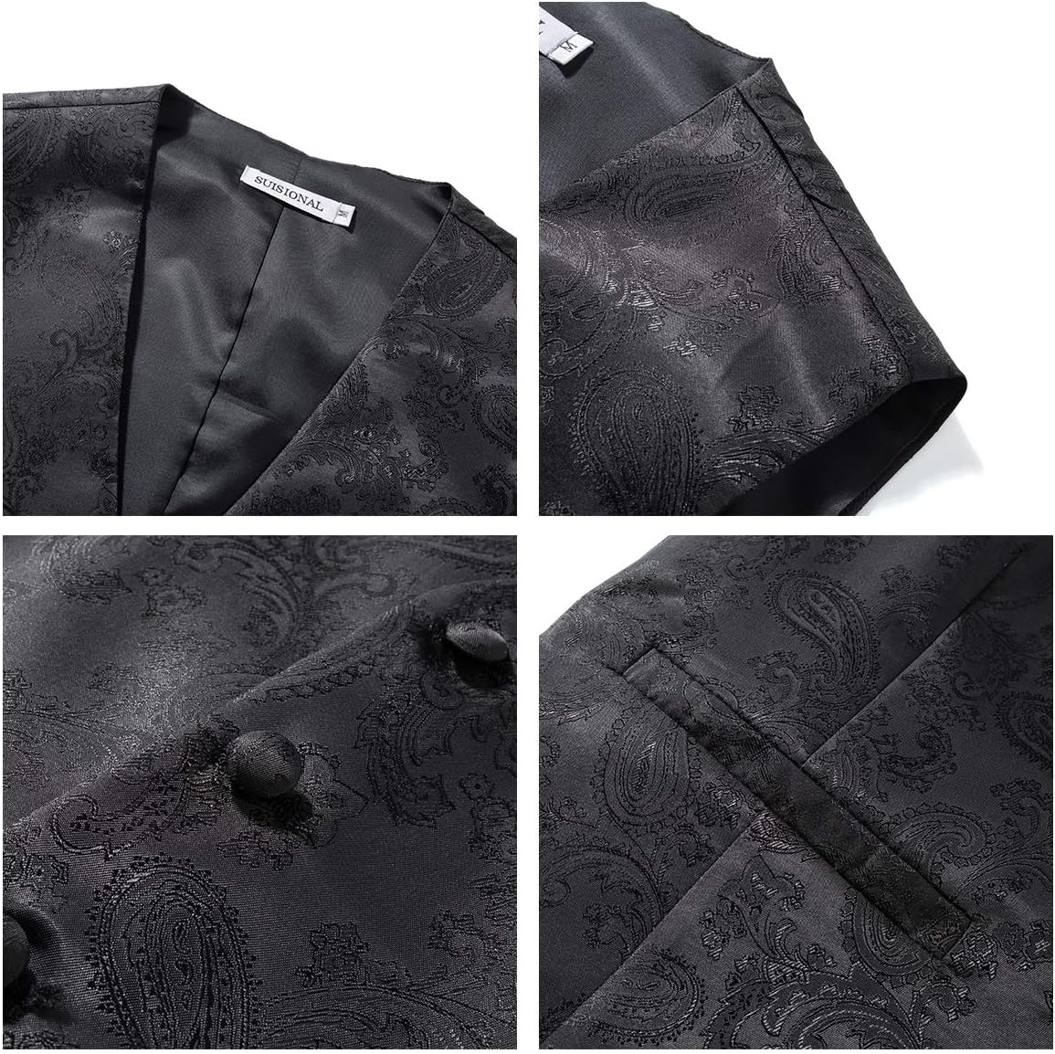 1.Premium Tailoring Heritage:Crafted by expert suit makers for impeccable fit and lasting structure. 2.All-Day Comfort & Breathable Fabric:Anti-wrinkle, anti-pilling fabric with adjustable back belt for personalized comfort. 3.Complete 4-Piece Versatile Set:Includes vest, necktie, bow tie, and pocket square—ready for any occasion. 4.Sophisticated Functional Design:Features a sharp 45° V-neck, five-button front, and convertible side pockets. 5.Easy Care & Durable Quality:Machine-washable, colorfast fabric that retains shape and elegance over time.