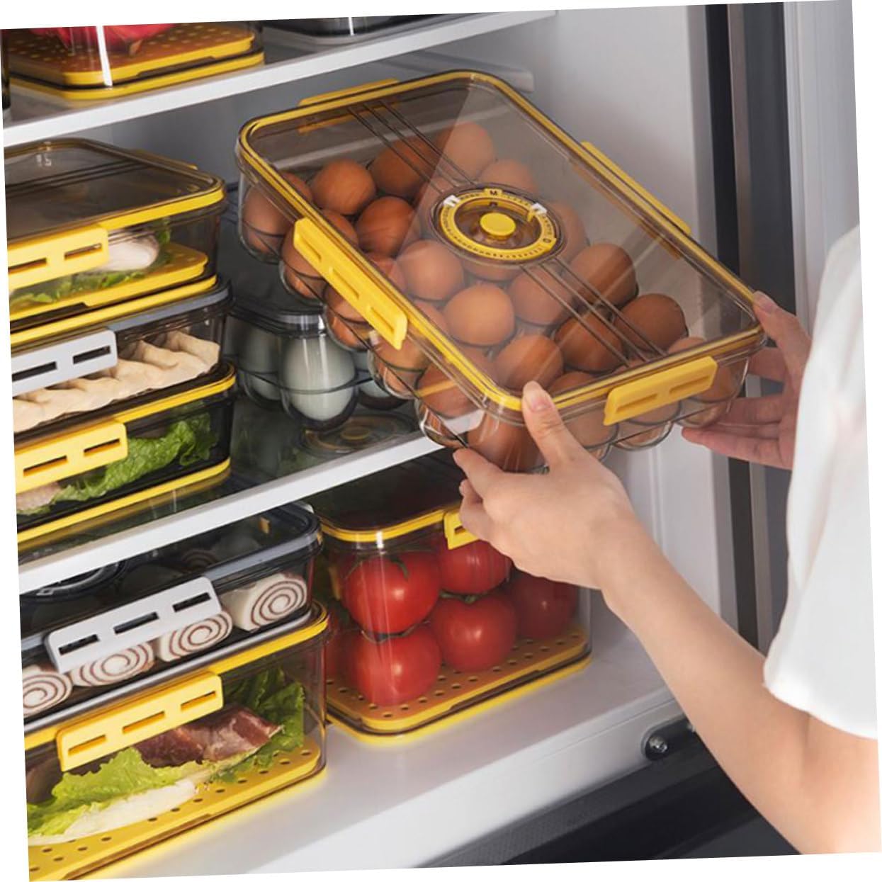 Package List 1 x refrigerator crisper Features - Color: Yellow Food Storage Container - Size: 32.50X22.50X8.50cm/12.77X8.84X3.34inch Fresh-keeping box. - Material: Plastic Food Storage Box - It is more convenient to take and store, and storage starts from now Taste Isolation Food Box. - Superposition more space, holding the two sides, very easy to take out from the refrigerator Refrigerator Container. - Orderly placement, in good order, clear and bright, you can see the food clearly Refrigerator Food Case. - The storage box is stackable, tidy and beautiful, space-saving Home Crisper. - Creative design, very convenient and practical, suitable for home use Fridge Food Box.Goods InformationHome Crisper It can help keep the refrigerator organized and clean, convenient and practical.Food Crisper Made from high-end , it is very and durable for kitchen fridge use.Refrigerator Food Case This item is a refrigerator preservation storage box.Food Storage Container The storage box is stackable, tidy and beautiful, space-saving