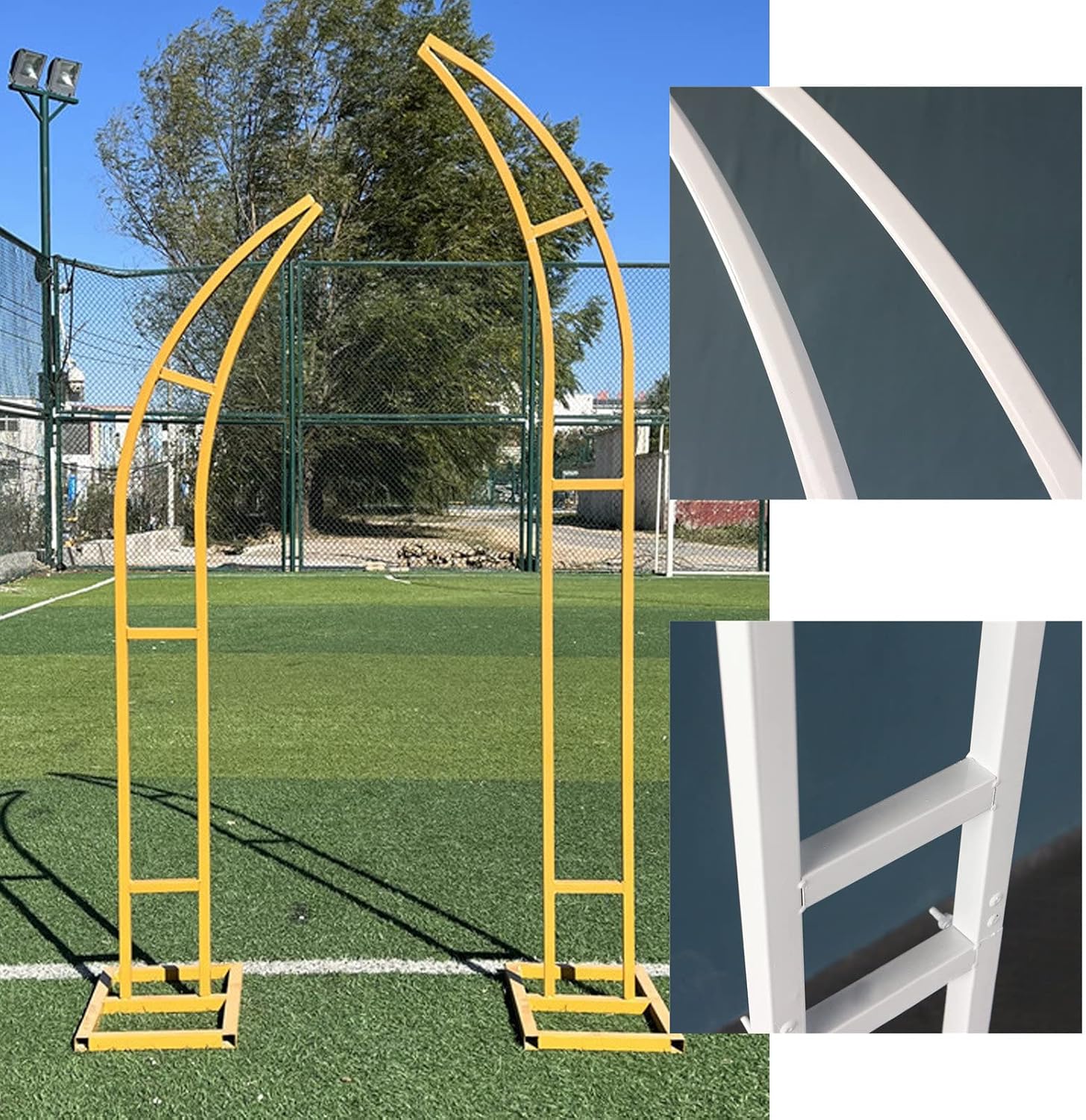 This wedding arch stand is an elegant and practical solution for enhancing your special events, perfect for weddings, birthday parties, and other celebrations. Featuring an innovative snap-lock design, assembly is quick and hassle-free, allowing you to focus on creating unforgettable moments. The sturdy base provides exceptional stability, and for added assurance, weights can be easily added. Made from durable metal, this wedding arch comes in stylish colors such as white, gold, and black, making it a versatile choice for any decor theme. Its crescent shape adds a unique flair, enhancing the atmosphere of your garden, lawn, backyard, balcony, patio, or indoor space. Available in various sizes to suit your venue perfectly: - 1.5m + 1.8m (4.9ft + 5.9ft) - 1.8m + 2.1m (5.9ft + 6.8ft) - 2.1m + 2.5m (6.8ft + 8.2ft) The package includes two half-moon-shaped metal arches (decorations not included), three rolls of color floral tape, a floral wire cutter, 50 pieces of green floral wire, a 35m green paddle wire, and 1000 cable ties. Please note that minor scratches may occur during shipping, and we appreciate your understanding. Elevate your event space with this stunning wedding arch that seamlessly blends beauty and functionality, making it a valuable investment for all your future celebrations.