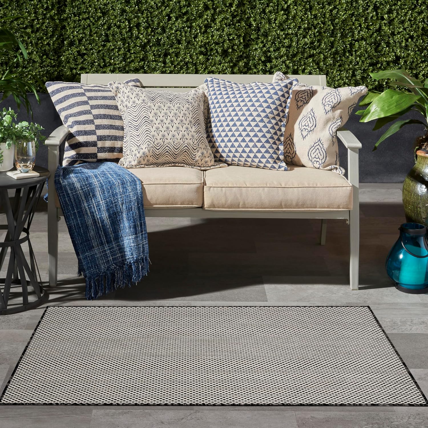 Set a warm and relaxing tone with the Courtyard Collection. These elegantly understated outdoor rugs feature subtly textured geometric patterns in fashionable palettes designed to anchor modern and contemporary decor. Flat woven polypropylene fibers stand up to heavy traffic and are easy to clean: simply hose-rinse and air dry. Courtyard rugs are ideal for your porch, patio, or any indoor space.