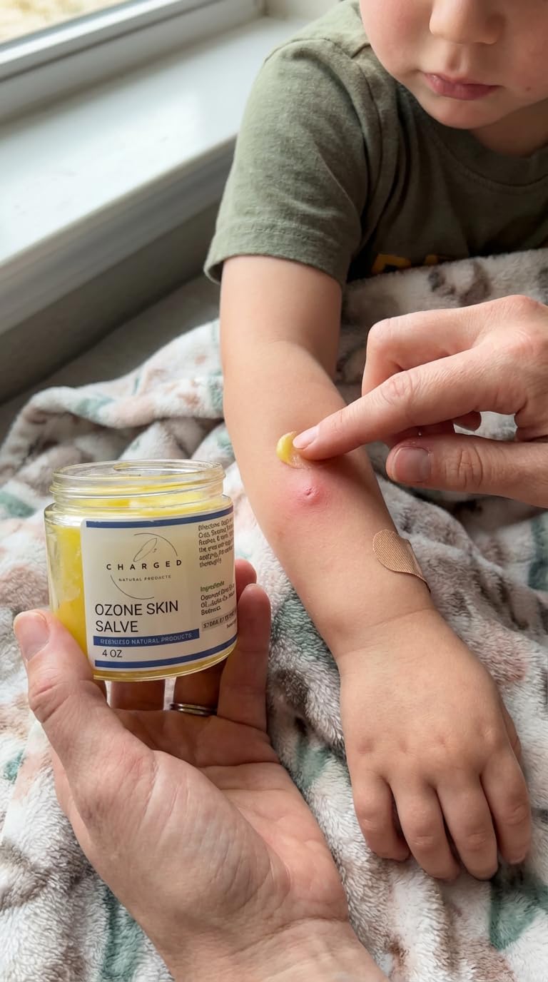 Our Ozone Skin Salve is a multi-purpose healing balm for the whole family. This rich salve is infused with medical-grade ozone into organic oils, creating a gentle ointment that soothes and repairs skin naturally. Use it on scrapes, cuts, minor burns, stretch marks, scars, bug bites, and more. It’s even safe for eczema and diaper rash, making it an ideal remedy for infants’ sensitive skin and even for your pets’ minor skin issues.