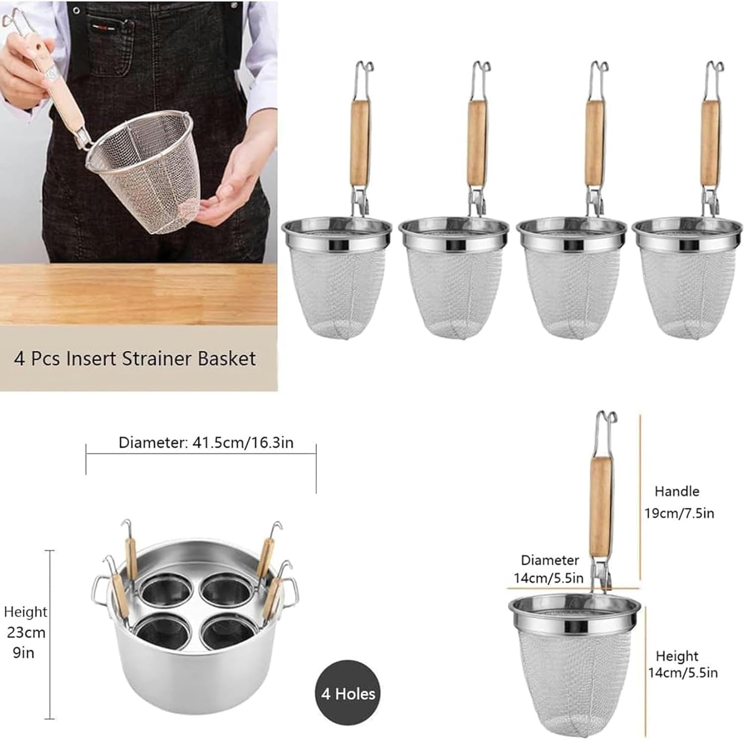 This family-size Pasta Cooker/Steamer Set makes cooking and draining pasta easy. With Inserts strainer basket, dinner has never been easier. Includes a hangable steel lid for healthier, steam cooking.This Multifunctional Noodle Cooking Pot, Stainless Steel Noodle Cooking Pot with Divider and Colander, Cooking Set for Home Kitchen, Restaurant, Commercial Cooking PotSpecificationsName: Pasta Cooker Insert SetMaterial: 201 Stainless SteelColor: SilverSize:4 Hole Pasta Cooker Pot Size: 23x41.5cm/9x16.4 inchSuitable: Induction Cooktop, Gas, Electric, Ceramic CooktopsPackage List:1 x Pasta Cooker Pot