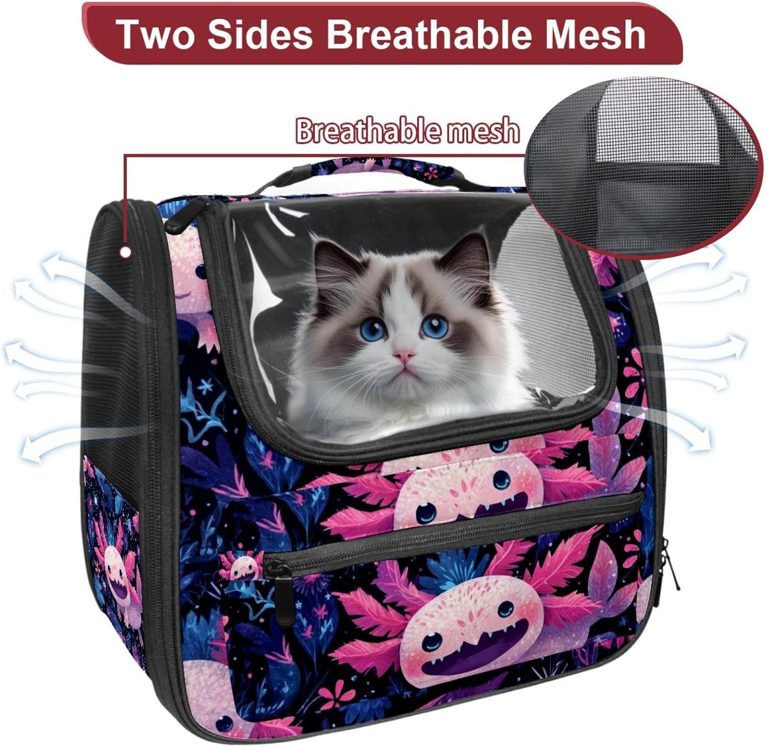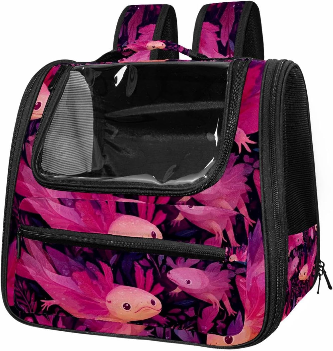 Well made: Cat Backpack Carrier is made from 900D oxford fabric, pp webbing, velvet, nylon, which is very sturdy, environmentally friendly and breathable. Not easily scratched by pet’s claws, pet backpack carrier is SAFETY & ANTI-SCRATCH. The back padding will give you a comfortable and breathable experience. Ventilated Backpack: With a breathable window in the front, this pet backpack allows cats to enjoy the sun without feeling stuffy. There are two side pockets and one big front pocket, and you can take foods or toy for your kitten pet. It is big enough for cat to turn around, and there are side pockets and hook holes, you will enjoy the greatest convenience when taking your cat out. Perfect size: Cat carrier is 15.75x9.84x13.78in/40x25x35cm. Fits most small/medium sized cat, dog, and pet. Quality fleece bed provide a comfortable place for your pet. Lightweight and easy to carry to all places. Built-in harnesses keep your naughty friends from escaping. Removable cosy mat for easier cleaning and let your pet enjoy it inside. Easy to carry: The adjustable shoulder strap of pet carrier bag help you hands-free carrying and makes it the most safe and convenient pet carrier bag for your travel. Seat belt design provide pets with safety protection throughout the trip. Pad protection keep your pets comfortable during travel. Unique Design: Innovative inside graphic design gives you a stereoscopic 3D visual experience. You also send us the photos you interest to make your unique dog or cat carrier. Pet bag is also a amazing gift for pet lover.