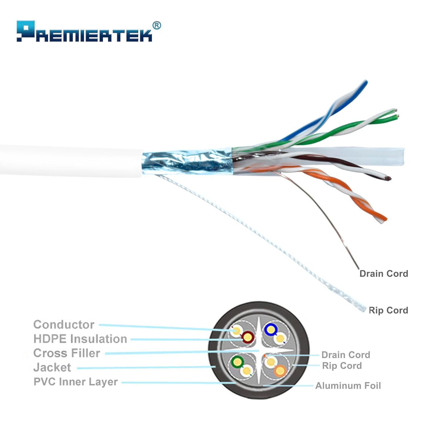 Premiertek Cat6A 100% Solid Copper Plenum CMP foil shielded, UTP Ethernet cable Supporting frequencies of up to 650MHz test pass and the 10BASE-T, 100BASE-TX, 1000BASE-T, and 10GBASE-T standards, it can handle up to 10Gbps in terms of throughput. Suitable for installation in building plenum spaces (the area through which environmental air is transported). CAT6 Plenum cable mostly found inside walls, below a raised floor or above a suspended ceiling. By using plenum-rated cable the levels of toxicity in the smoke would be lower because of its CMP jacket that is flame-retardant and does not catch fire. 23AWG copper conductors insulated with HDPE to stop external attacks. Cat6 cable is perfect for local area networking and its specifications provide significantly lower interference or near end cross-talk in the transmission. 4 pairs insulation colors (white/green, white/orange, white/brown, white/blue) with spline put together to form a core and ripcord full length of cable to make it easy to tear the cable. It is compliant with EIA/TIA standards. Premiertek Plenum rated cat6 Ethernet cable is best for smooth and easy installation.