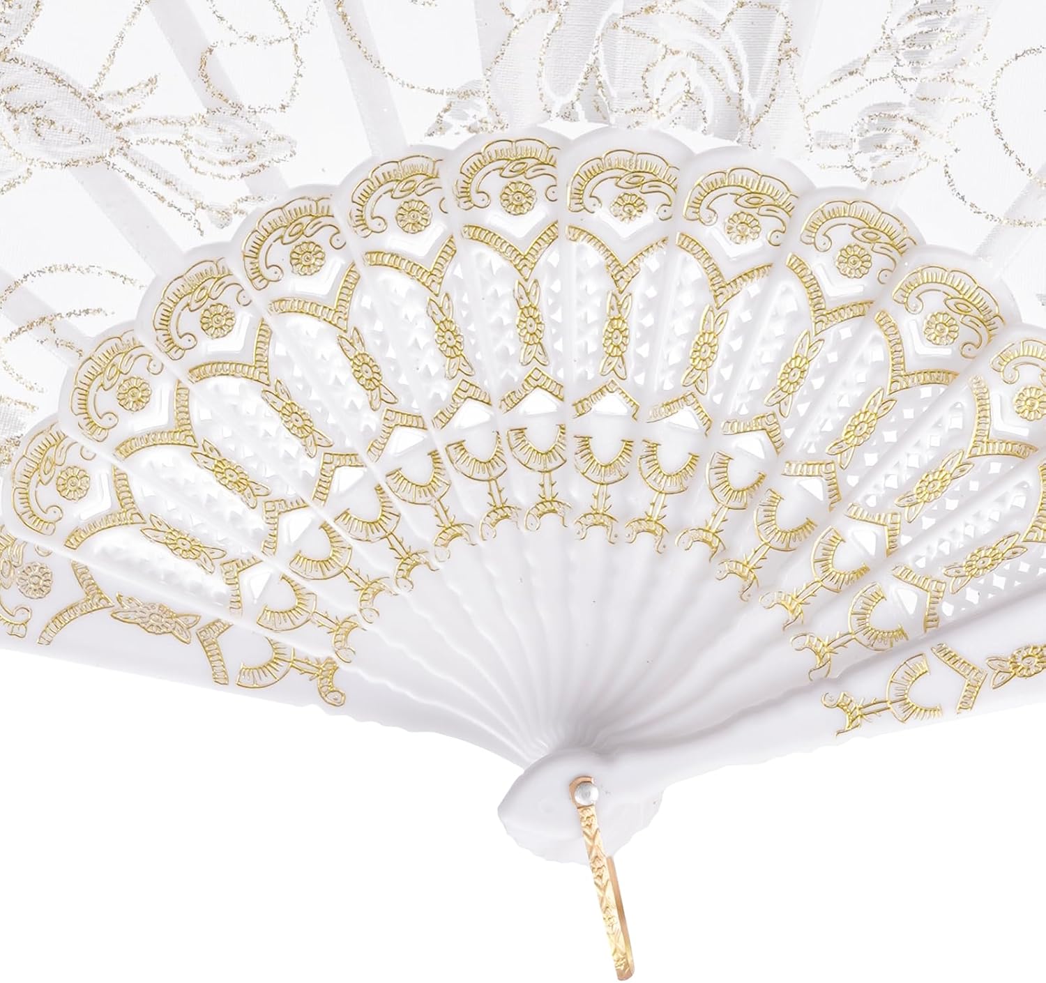 These stunning floral hand fans are the perfect accessory for adding a touch of elegance to any event. Made from high-quality fabric with a vintage rose pattern, each fan is carefully crafted to ensure durability and beauty. The delicate lace trim and intricate hollow carved plastic staves make these fans a true work of art. With a convenient metal U ring handle, they are easy to hold and open. Whether you're attending a wedding, enjoying a night of dancing, or hosting a memorable party, these folding hand fans will keep you cool and stylish. Compact and lightweight, you can easily carry them in your bag for whenever you need a refreshing breeze. Don't miss out on the opportunity to own these fashionable accessories.