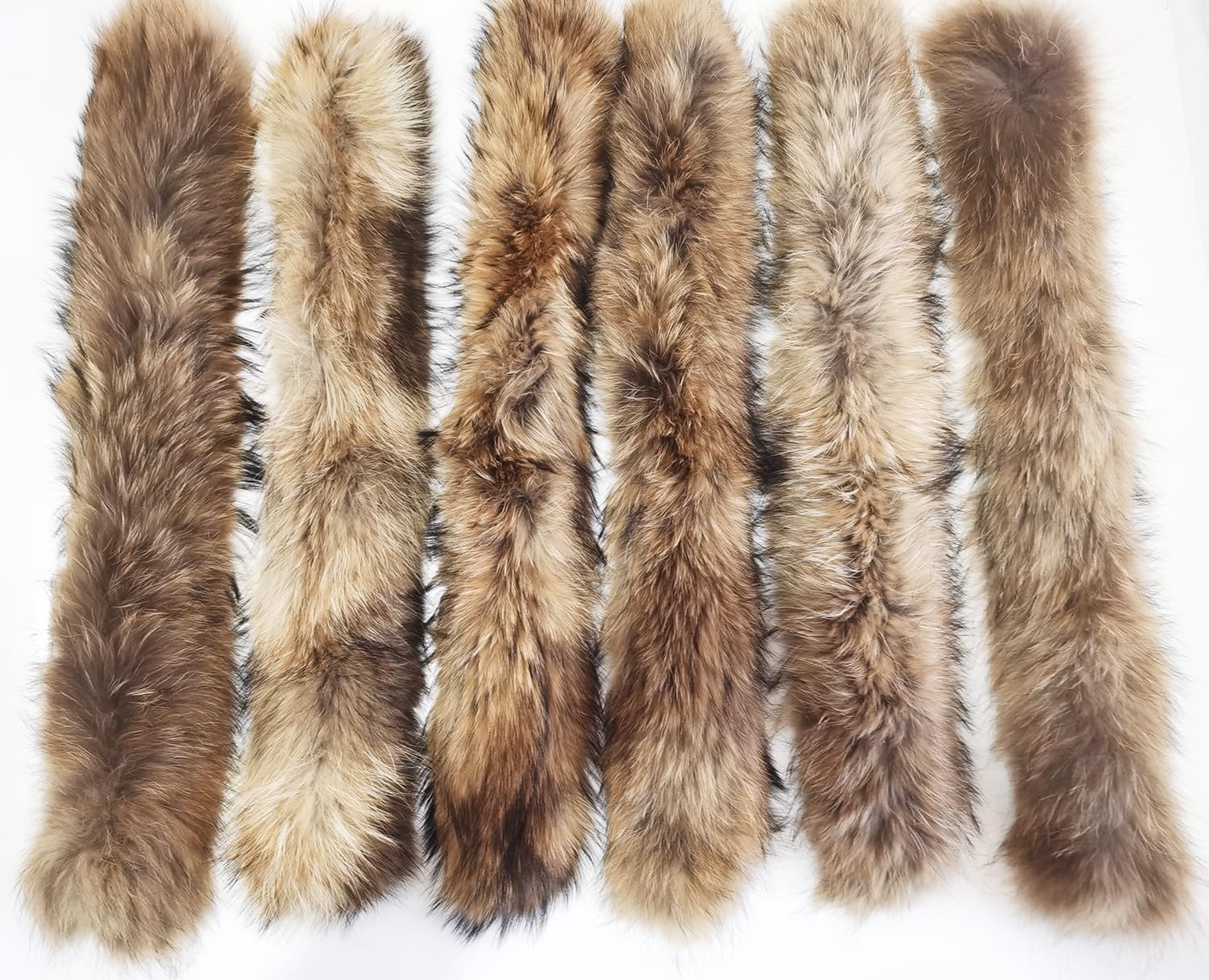 After opening the package, please comb it with a comb first, like combing hairs, so that the hair is arranged neatly, and then shake it a few times to make the Hairs naturally fluffy. The Hairs will be very beautiful. Real raccoon Hairs hat collars, artificially raised Raccoon Hairs, each color is not exactly the same, because the Hairs on each raccoon is different, and the color of the Hairs on the body parts is also different, some are darker, Some are light in color, some have black tips, and some have more yellow parts, all of which are naturally grown,Please accept the difference that each color is not exactly the same, if you buy it