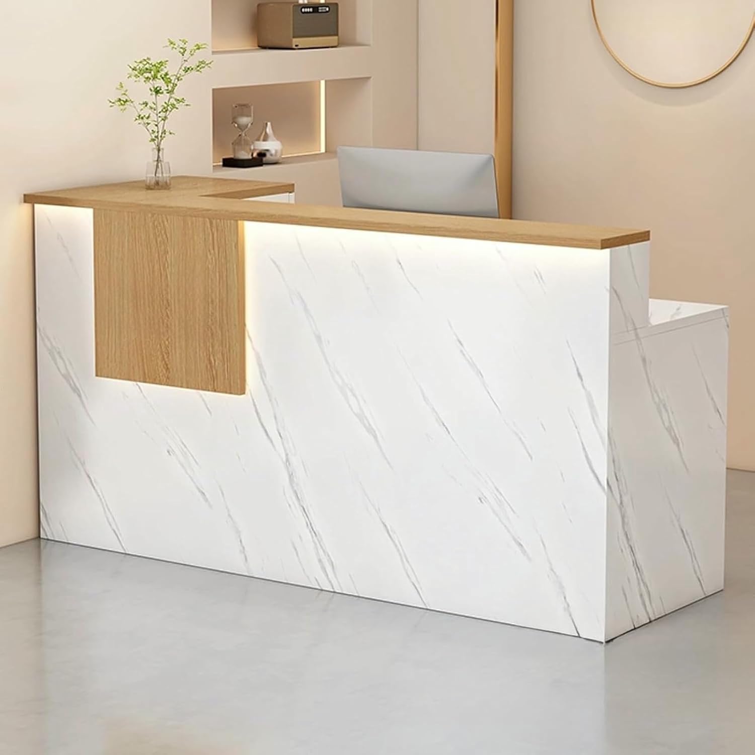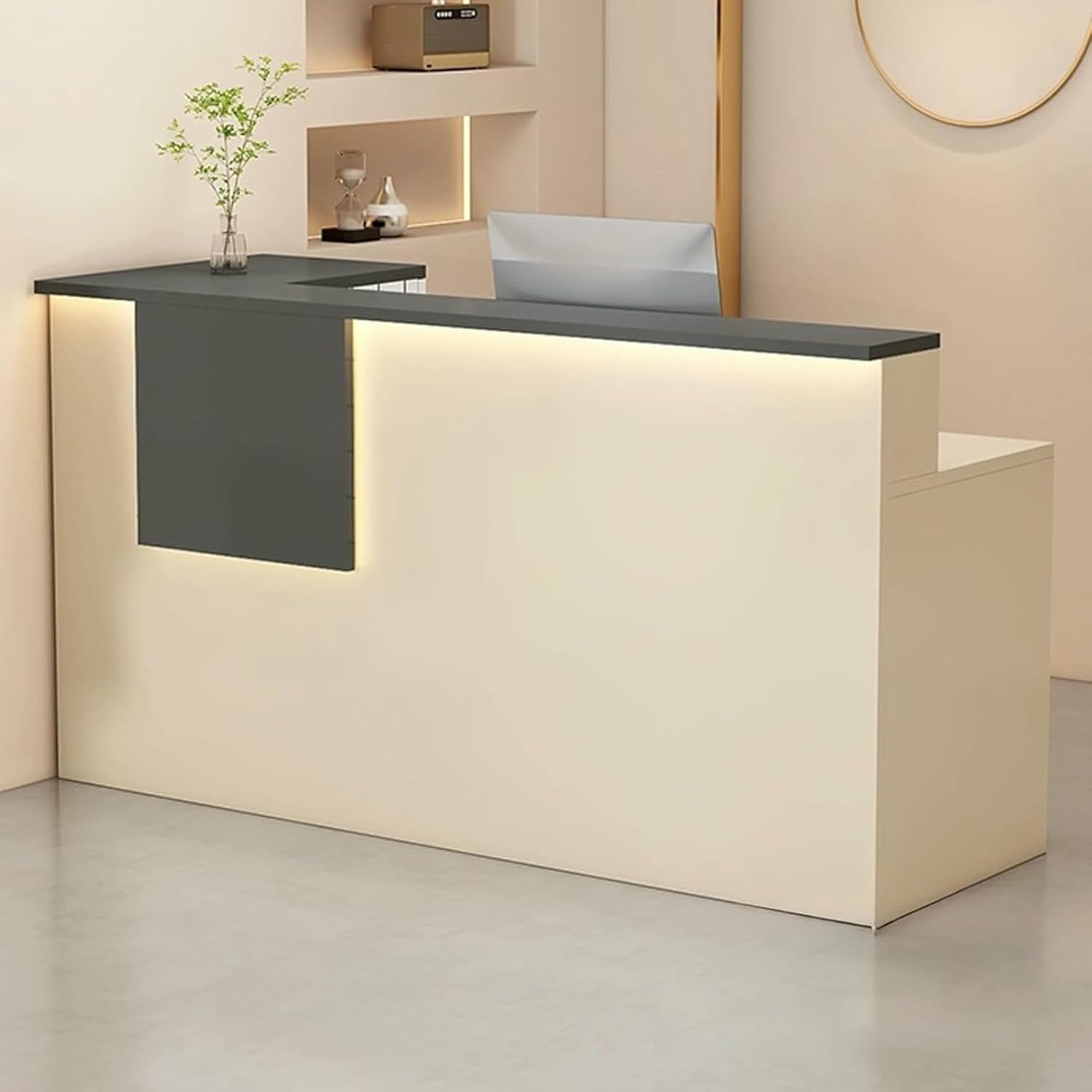 Locked drawer design, locks privacy, makes office more relaxed and comfortableretail counter adopts thickened double-table design, high-table storage can be covered, low-table office, small space is used for big use.Large storage space, with open and closed double storage system, worry-free storage.The counter table has three silent rails, which are smooth and quiet without noise.With buffer damping door hinge, it opens and closes smoothly and prevents pinching.Specifications:Color: White+Natural , White+Gray , White , Cream+Natural , Cream+Gray , Cream+White , White A+Natural , White A+Gray , White AMaterial: WoodInstallation or not: YesOverall Dimensions: 100/120/140×45×90cm / 39.3/47.2/55.1×17.7×35.4inNote:1. There are only Reception Desk, other products are shooting props;2. Note: Due to the particularity of the furniture, there will be slight errors in the finished product, which is normal. The data is for reference only and must be based on the actual product. We hope for your understanding!3. While we display colors as accurately as possible, due to differences in computer monitors, colors may vary.
