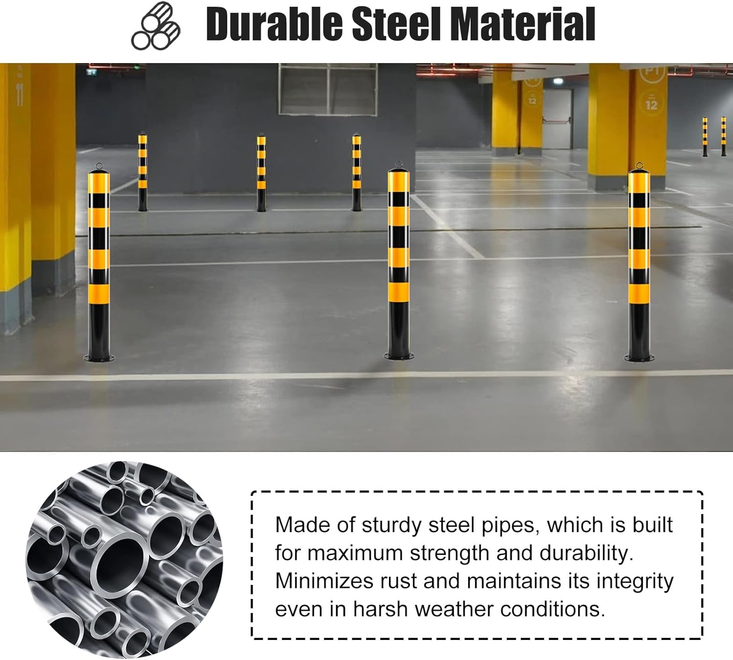 Introducing our highly visible and durable safety bollards, designed to enhance pedestrian safety and prevent vehicle or forklift collisions in various environments. Ideal for parking lots, warehouses, and construction sites, these bollards serve as a reliable barrier, clearly marking restricted areas and ensuring that pedestrians remain safe. Each package includes two robust safety bollards, eight screws, and a 3m (9.8ft) chain for easy setup. Crafted from high-quality steel, these bollards feature a striking black and yellow color scheme, ensuring they catch the attention of drivers and pedestrians alike. With a wall thickness of 2.5mm (1in) and a diameter of 11.4cm (4.5in), they provide the stability needed for long-term use. Available in multiple heights—50cm (19.75in), 75cm (29.5in), 100cm (39.38in), and 120cm (47.25in)—our safety bollards can be tailored to suit different environments. The reflective tape enhances visibility, making them ideal for low-light conditions, while the easy installation process allows for quick deployment in any location. Designed for versatility, these bollards can be disassembled and reinstalled as needed, providing flexibility for changing site layouts. Whether you need to guide traffic, protect pedestrian zones, or designate construction areas, these safety bollards are an essential addition to your safety toolkit. Please note that slight variations in dimensions may occur due to manual measurements, and colors may differ slightly due to lighting conditions. Should you encounter any issues, our quality service team is always ready to assist you. Enhance your safety measures today with our reliable safety bollards!