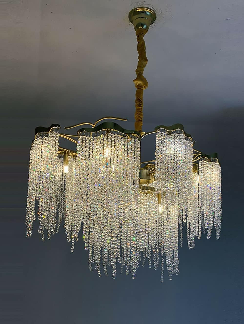 TSW FANTASTIC chandeliers have elegant design and soft light, it is friendly to eyes. It will create a comfortable and a romantic atmosphere, and will perfectly decorate and light up your room. One light,one life!!! This light is our manufactured brand new product, every lamp will be tested for good quality when shipping. So beautiful for your house, it is very noble and luxurious, making your house like a palace. 💡Product Specification: Material: High-end metal, K9 crystal Color: As shown in the photo, gold or chrome metal, please remark the color when ordering. Dimension: ●Diameter 23.6" (60cm) x Height 17.7" (45cm) ●Diameter 31.5" (80cm) x Height 19.7" (50cm) ●Diameter 39.4" (100cm) x Height 21.7" (55cm) Cord Length: Height adjustable Bulb Type: LED Voltage: 110-120V, 220-240V Style: Retro,vintage, modern & contemporary Occasion: For indoor pendant lighting Installation: Requires self-assembly Package Contains: 1 x chandelier(includes led light bulbs) 1 x installation instruction 💡Special Note: 1.Please allow a little color difference as the effect of the picture will be impacted by the lights of surroundings. 2.Import duties and taxes are not included in the item price. These charges are the responsibility of the buyer. 3.Please check with your country's customs office to determine what these additional costs will be prior to buying.💡Tips: 1.Please make sure you have cut off the electricity supply before installation. 2.Please use it in dry environment. 3.Please do not connect electricity until your fixture is fully assembled. 4.Please do not touch bulb when fixture is turned on or look directly at lit bulb.